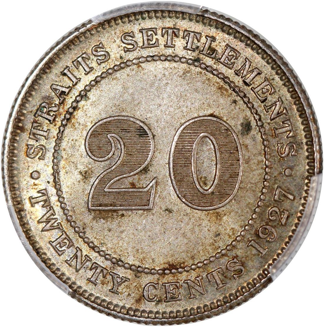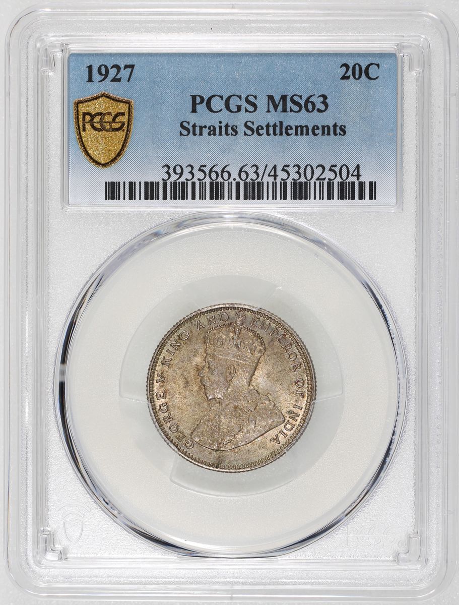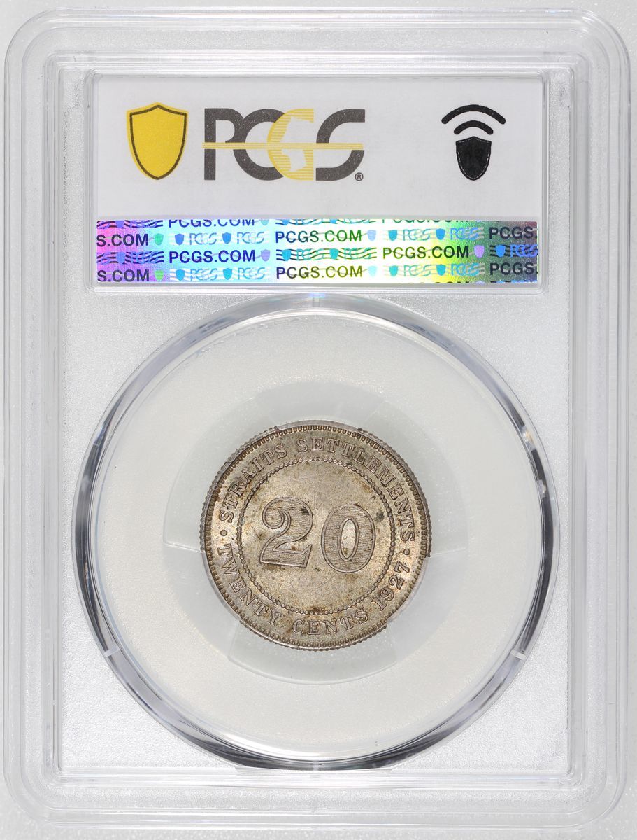 Straits Settlements, [PCGS MS63] silver 20 cents, 1927, PCGS MS63. Cert.# 45302504