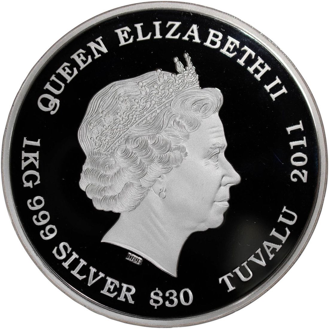 2011年圖瓦盧紀念1公斤銀幣30元, 發行量4688枚, PCGS不接受服務, 建議預覽,原況出售,概不退換