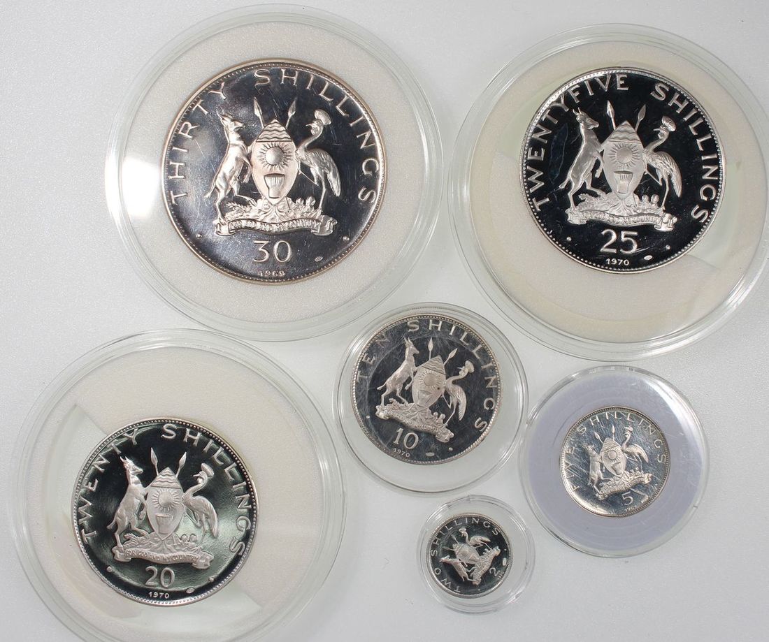 1969-70年烏干達一組六枚, 包括, 2, 5, 10, 20, 25及30先令, 10先令霜面, 建議預覽,原況出售,概不退換