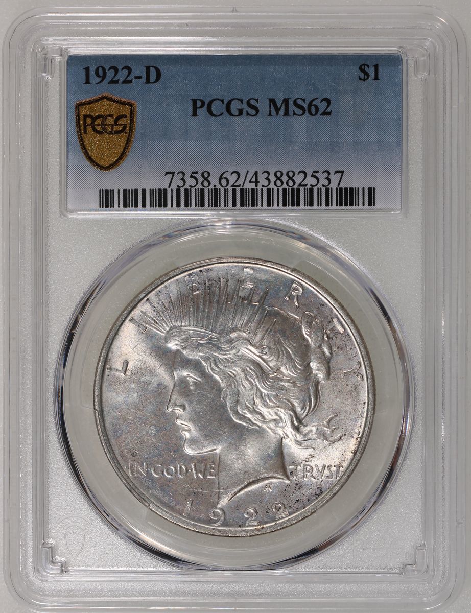 United States of America, [PCGS MS62] silver Peace Dollar, 1922-D, PCGS MS62, #43882537.