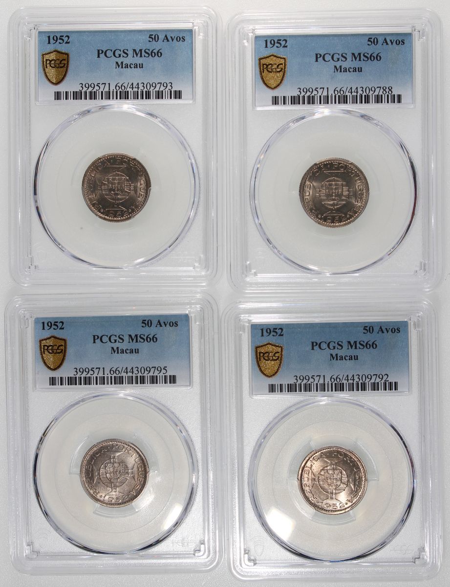 Macau, [PCGS MS66] 50 avos (4), 1952, #44309788, 44309792, 44309793, 44309795 (4)