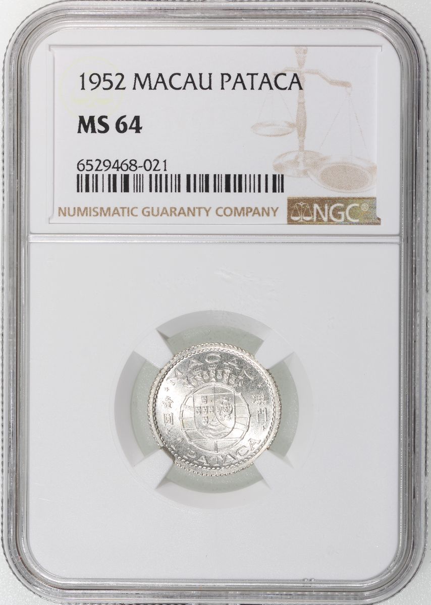 Macau, [NGC MS64] silver 1 patacas, 1952, NGC MS64, cert # 6529468-021