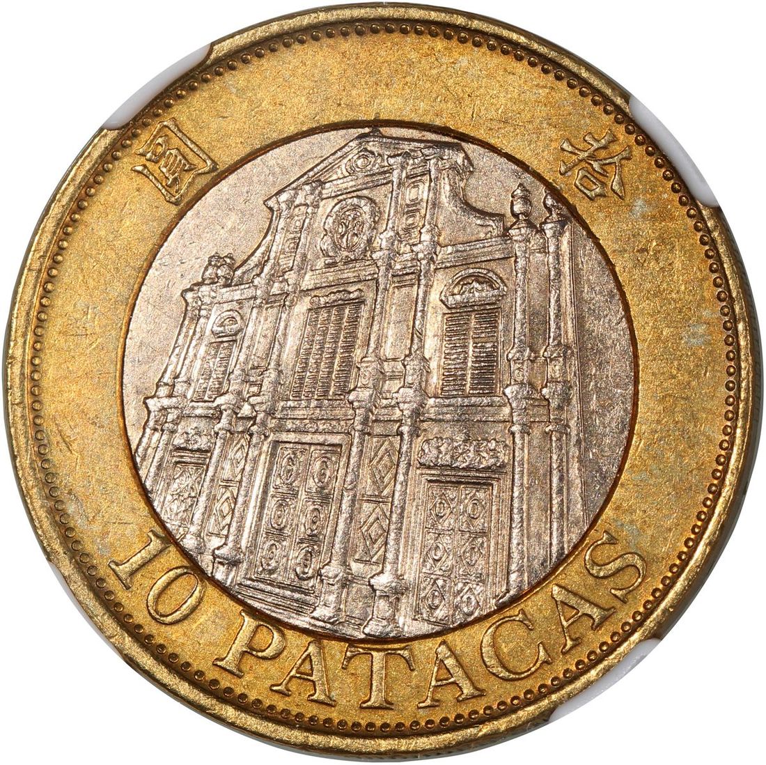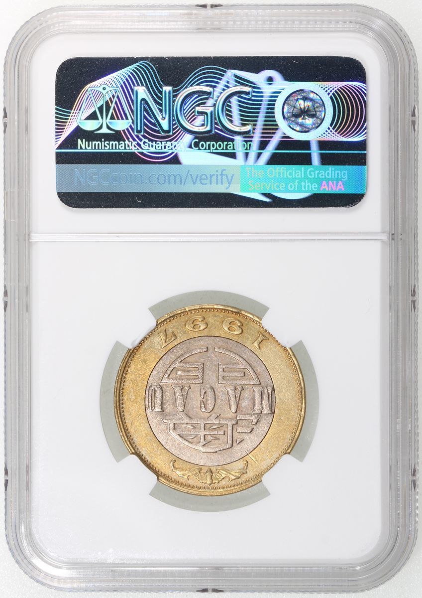 1997年澳門拾圓錯體,模具鈕轉,NGC UNC Details,有清洗