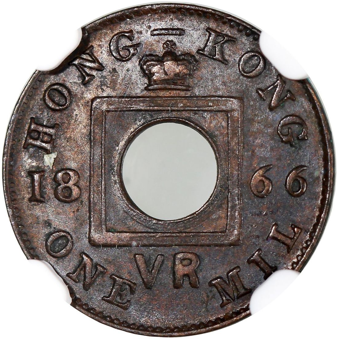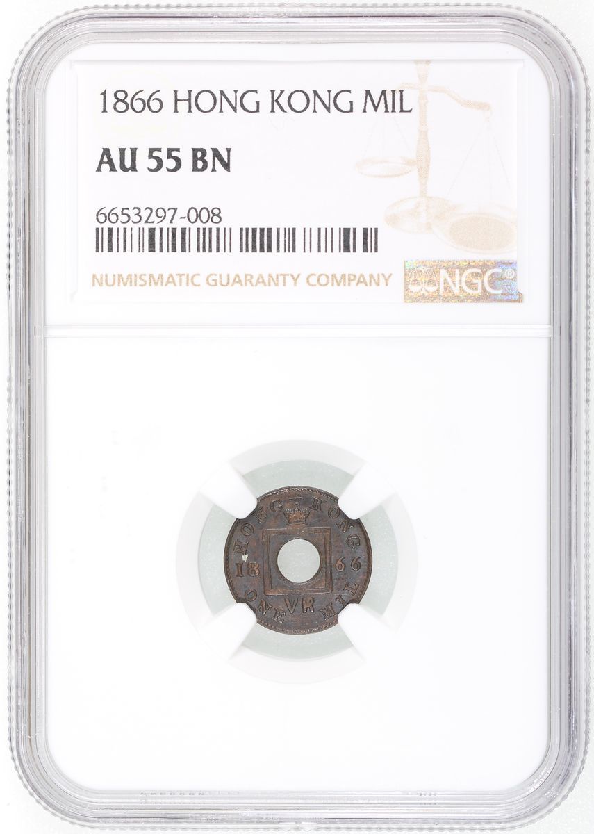 Hong Kong, [NGC AU55BN] 1 mil, 1866, 'with hyphen', NGC AU55. #6653297-008
