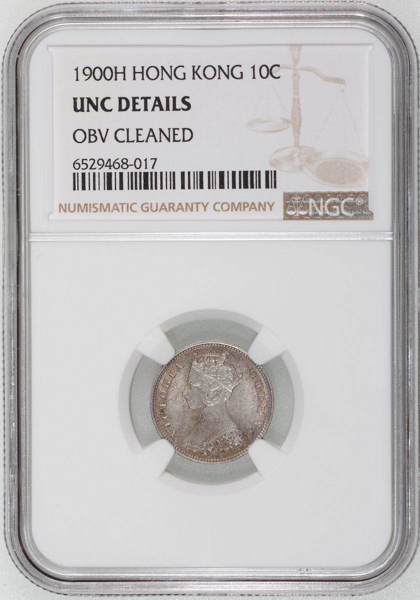 (x) Hong Kong, [NGC UNC, obv cleaned] 10 cents, 1900H, #6529469-017