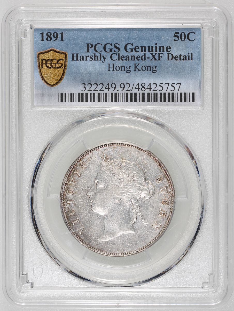 Hong Kong, [PCGS XF Detail] 50 cents, 1891, harshly cleaned. #48425757