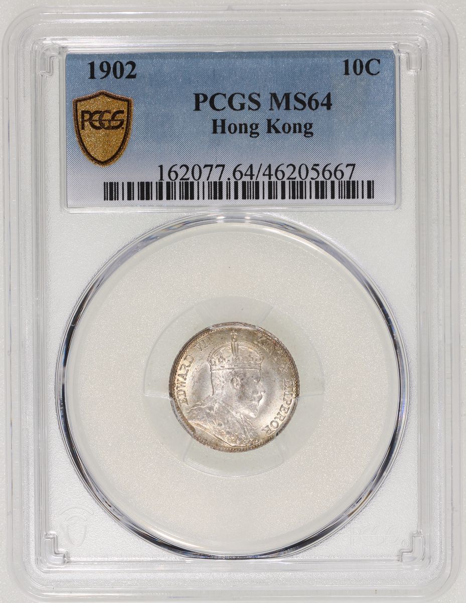 Hong Kong, [PCGS MS64] silver 10 cents, 1902, Edward VII on obverse, PCGS MS64, cert. #46205667