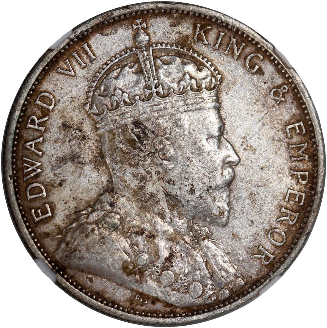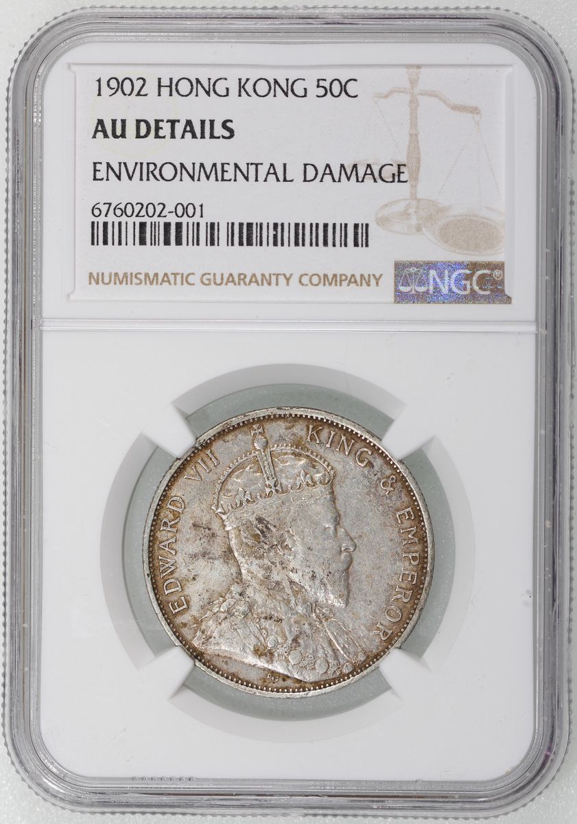1902年香港愛德華七世半圓,首發年份,NGC AU Detail,有環境損害