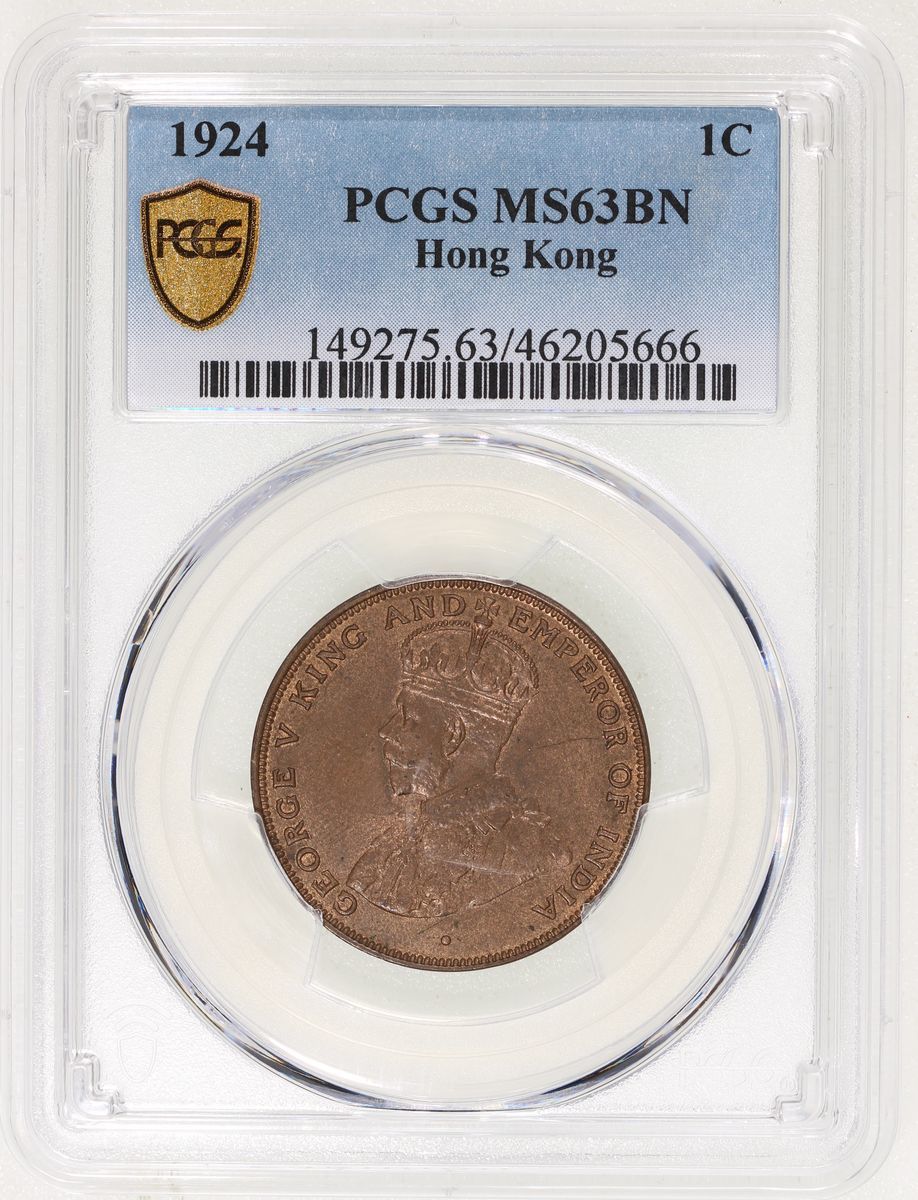 Hong Kong, [PCGS MS63BN] bronze 1 cent, 1924, George V on obverse, PCGS MS63BN, cert. #46205666