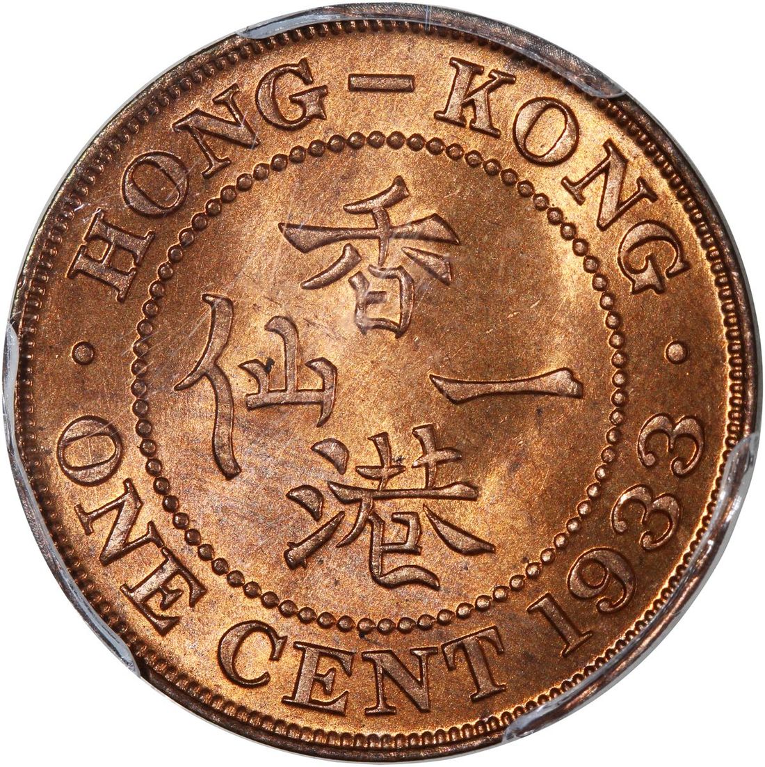 Hong Kong, [PCGS MS65] bronze 1 cent, 1933, #301143434