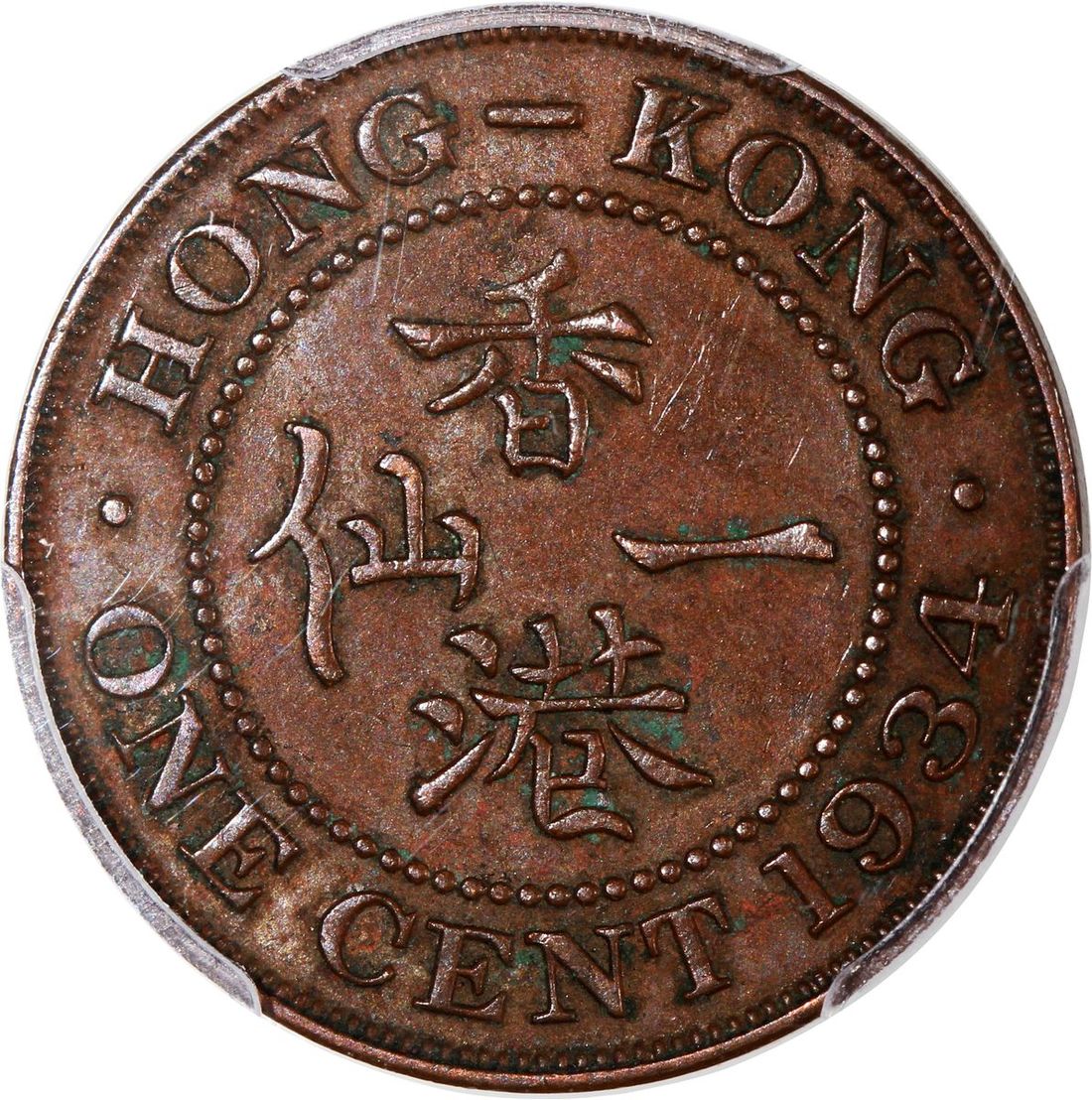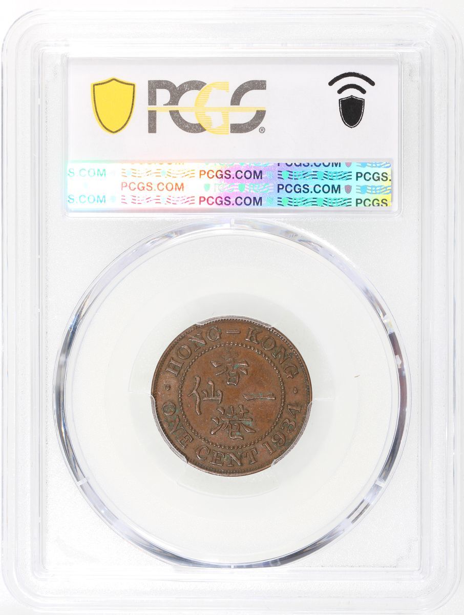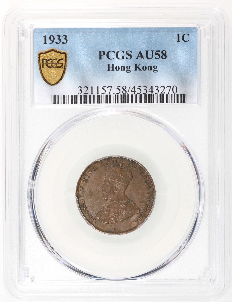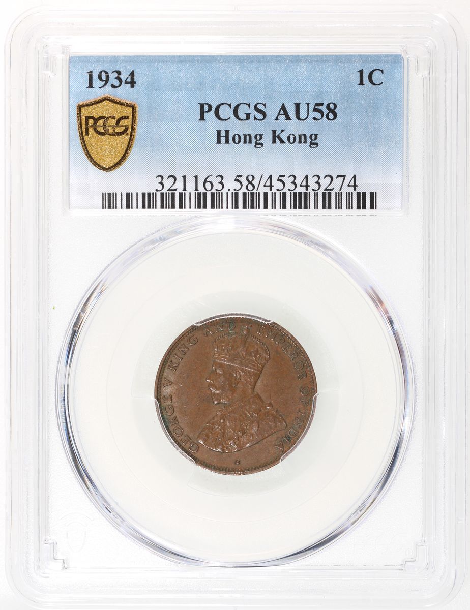 Hong Kong, [PCGS AU58] a pair of bronze 1 cents, 1933 and 1934, George V on obverse, (KM-17), both graded PCGS AU58, cert. #45343270 and 45343274 (2)