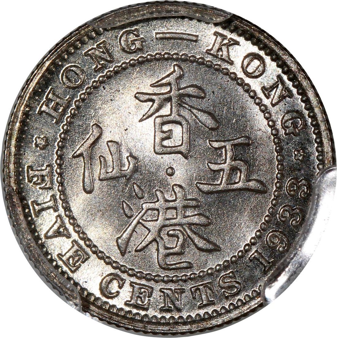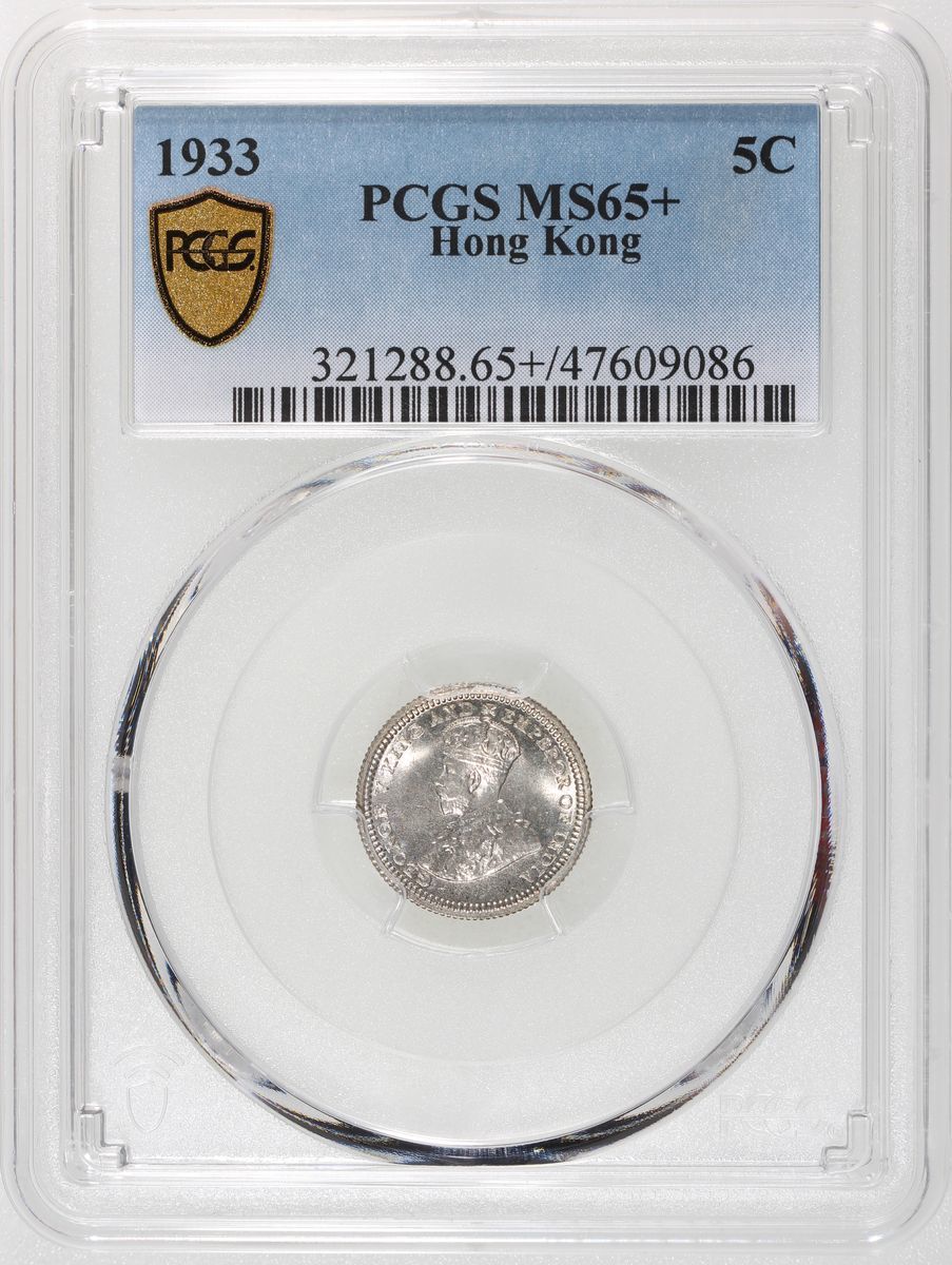 Hong Kong, [PCGS MS65+] silver 5 cents, 1933, George V on obverse, (KM-18), PCGS MS65+, cert. #47609086, continuous cartwheeling lustre and satin fields on both sides