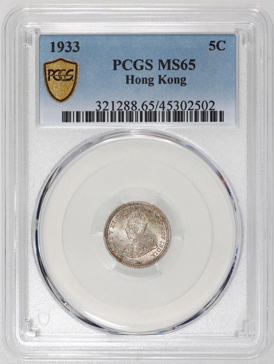 (x) Hong Kong, [PCGS MS65] silver 5 cents, 1933, PCGS MS65. Cert.# 45302502