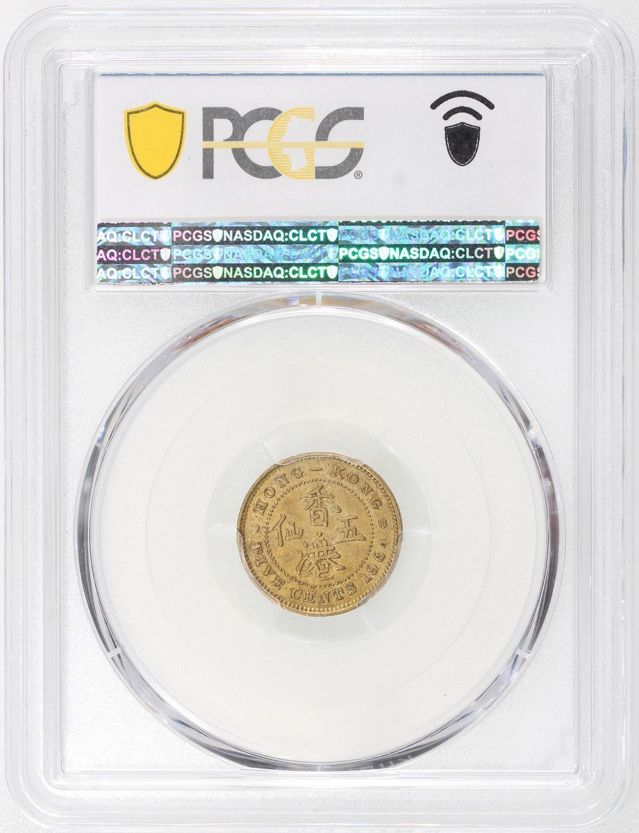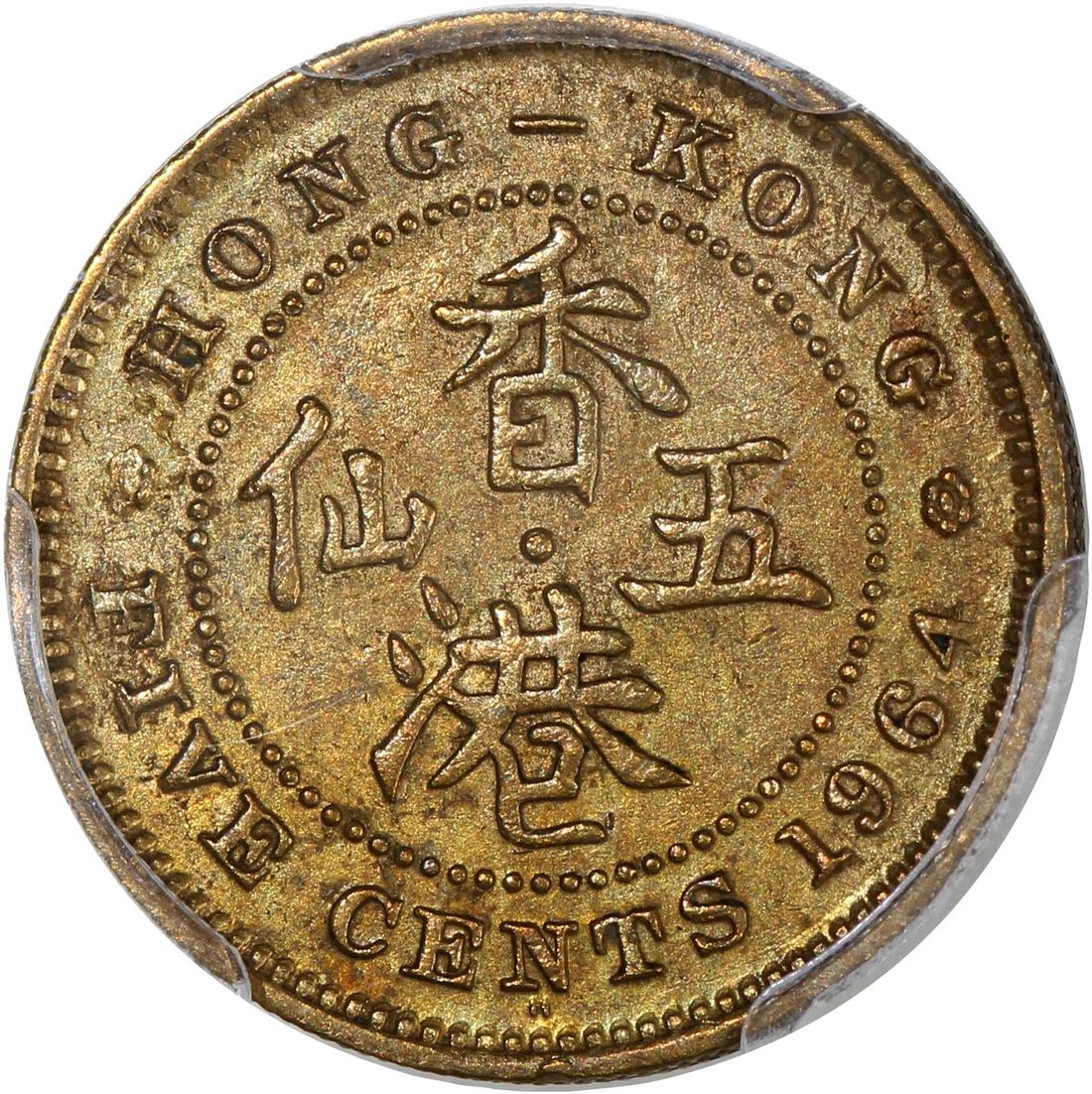Hong Kong, [PCGS AU50] nickel brass 5 cents, 1964-H, 'Key Date', PCGS AU50, cert. #41703403