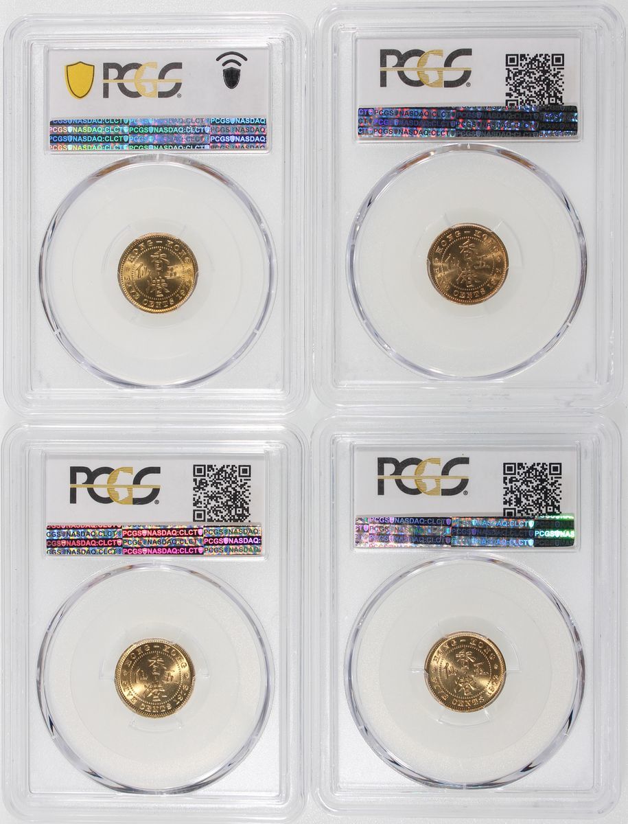 1972H、1978及1979年香港伊利莎白二世五仙一組4枚,PCGS皆評MS67