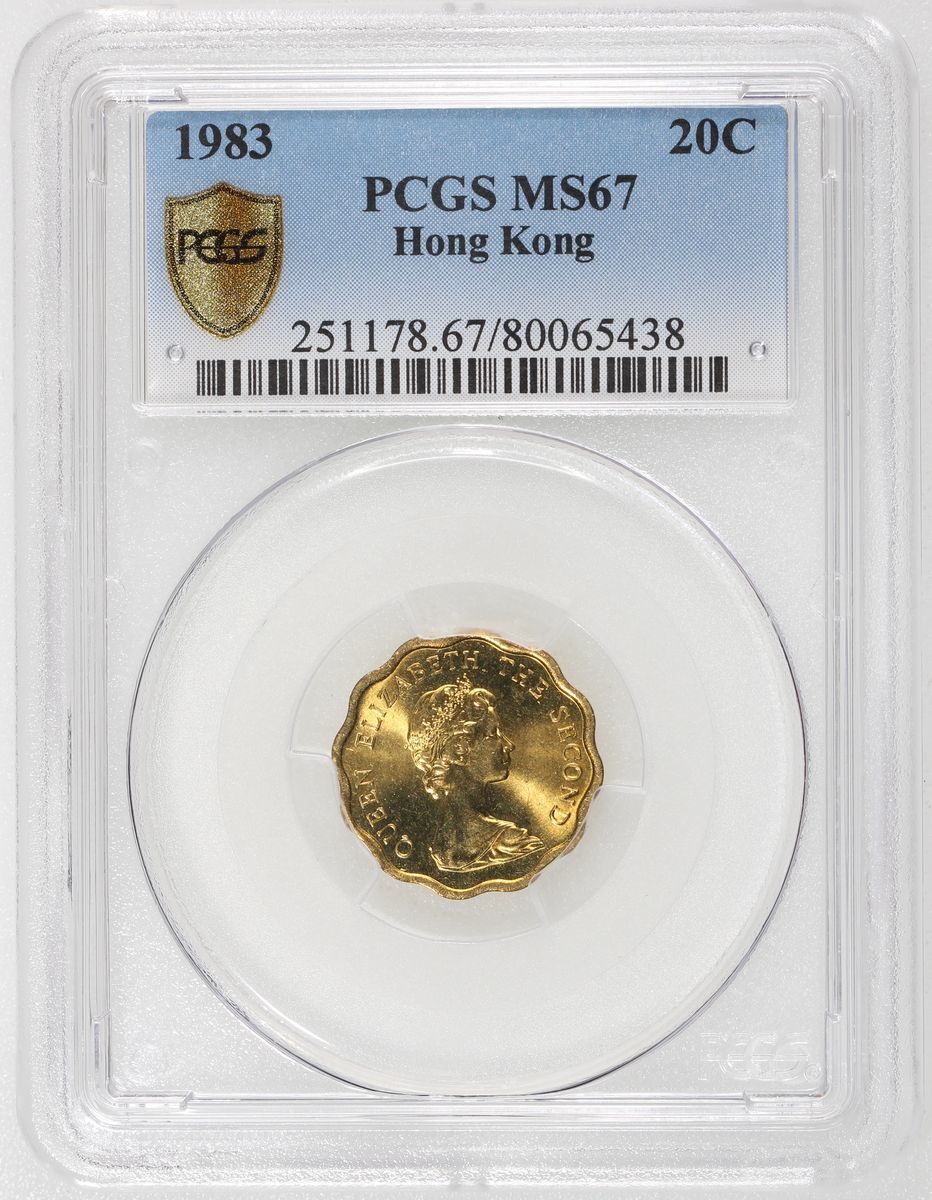 Hong Kong, [PCGS MS67] nickel brass 20 cents, Year 1983, PCGS MS67, cert. #80065438