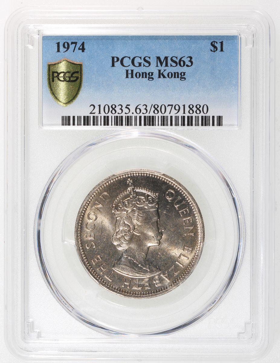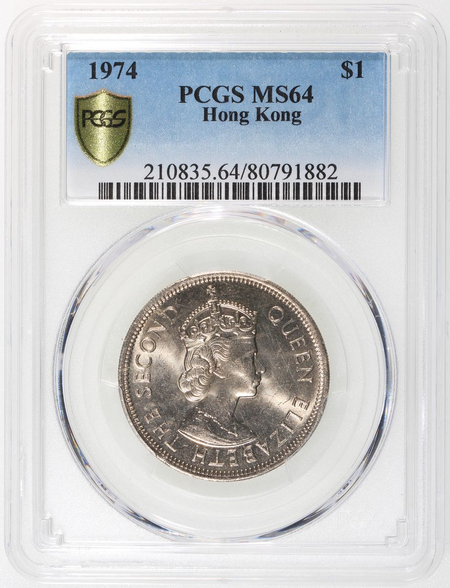 Hong Kong, a pair of $1, 1974, PCGS MS63, cert. #80791880, MS64, cert. #80791882