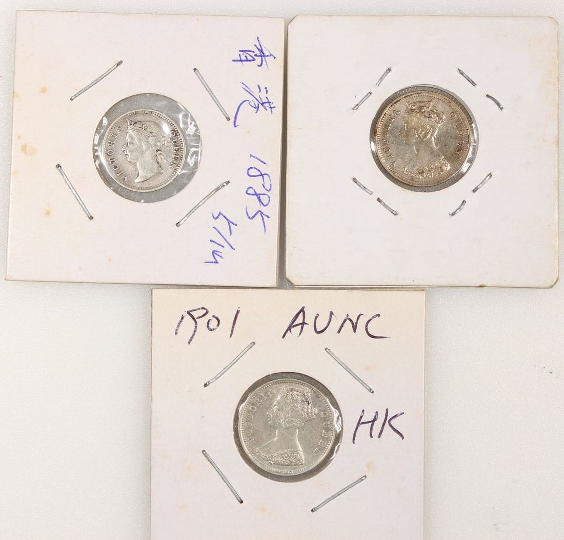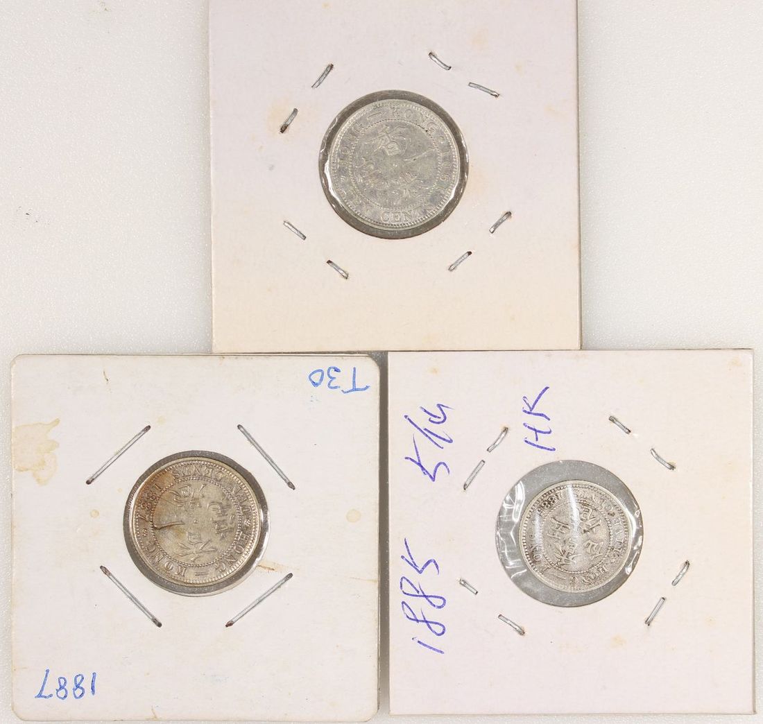 Hong Kong, a group of 3 coins, consists of: 5 cents, 1885,