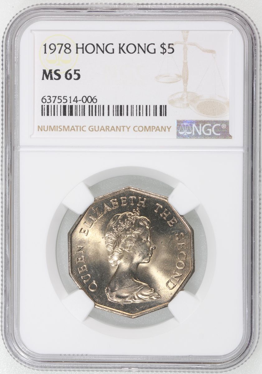 1978年香港伊利莎白二世伍圓一組2枚,NGC均評MS65