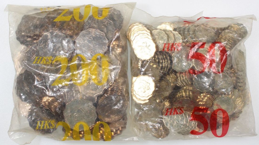 Hong Kong, a large lot of 100x copper nickel $2 and 250x nickel brass 20 cents, 1998, (KM-64), (KM-67), Uncirculated (350)