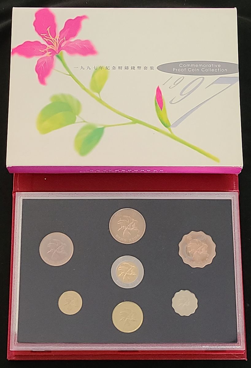 Hong Kong, Commemorative Proof Coin Collection, 1997, consists of 5 cents, 10 cents, 20 cents, 50 cents, $1, $2 and $5, proof, a few with frosted surface, with original box (a set of 7).