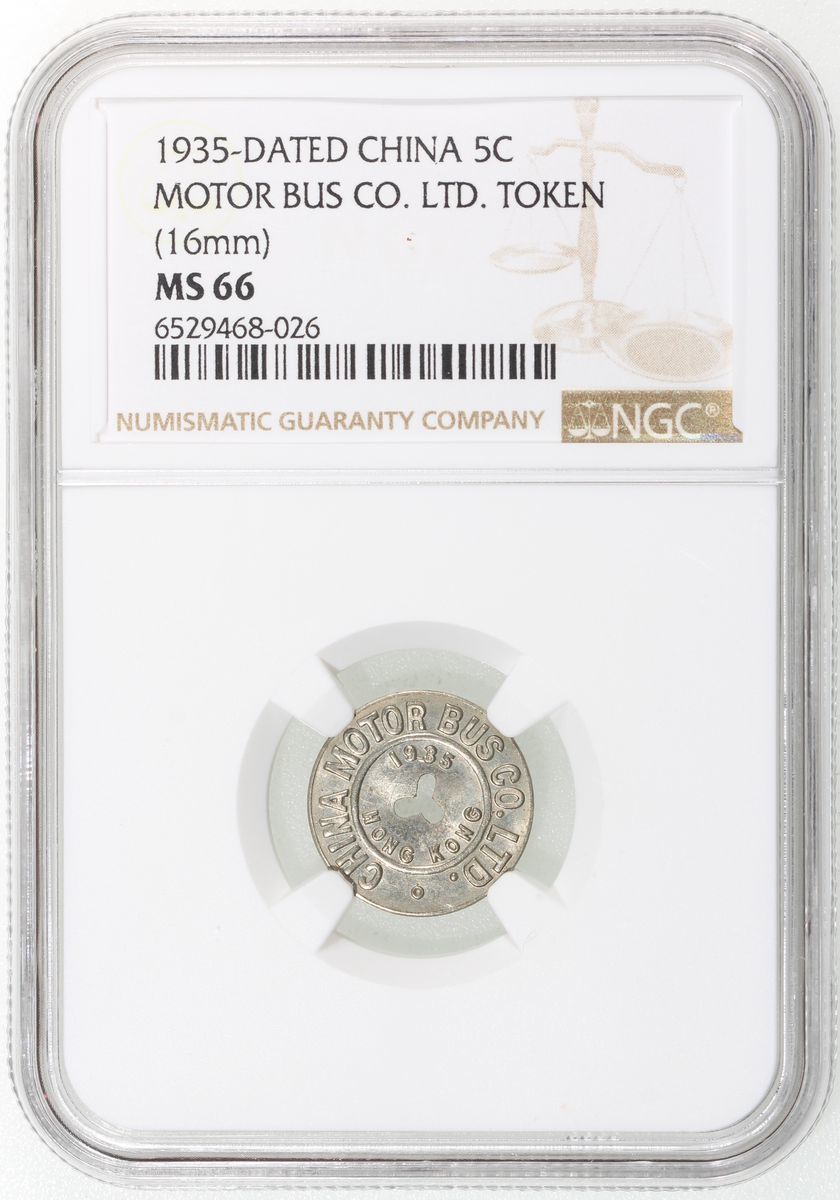 China Motor Bus Compnay, Hong Kong, [NGC MS66] 5 cents bus token, 1935, diameter 16mm,
