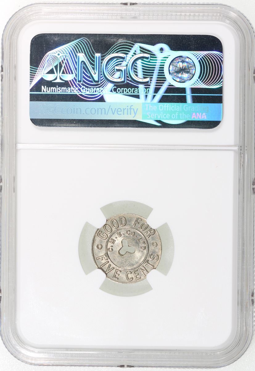 1935年香港中華汽車有限公司5仙代幣,直徑16毫米,NGC MS66