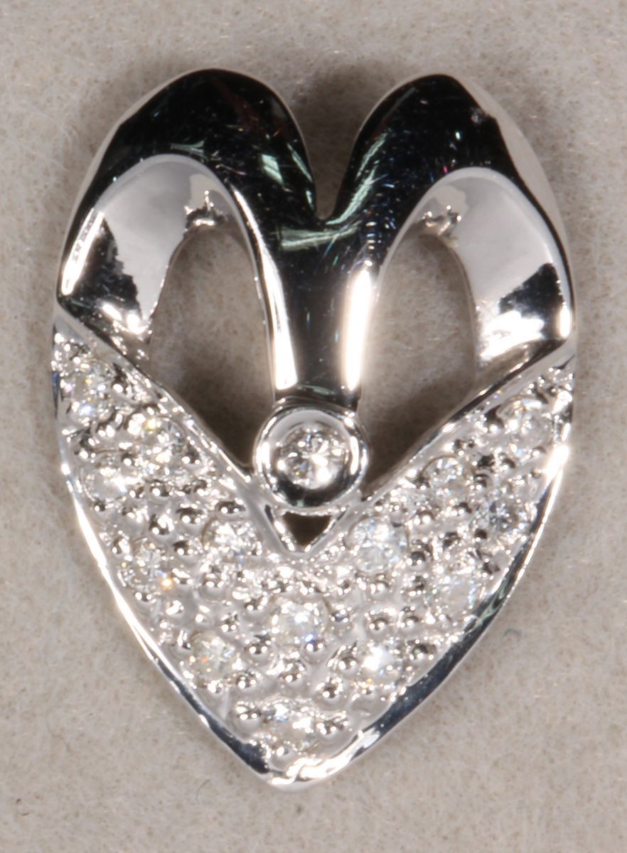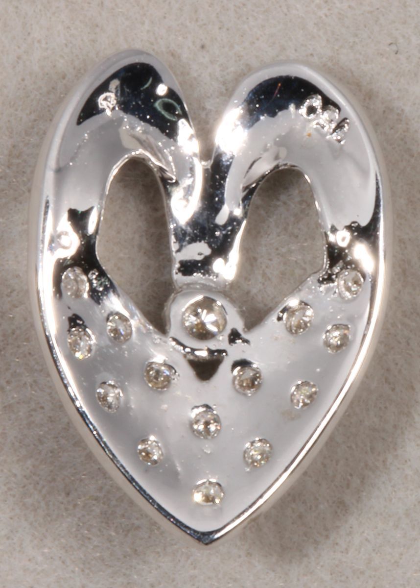 (x) An 18k white gold diamond pendant, weighs 1.12g, 15 diamonds 0.12 carats in total