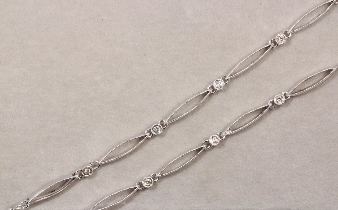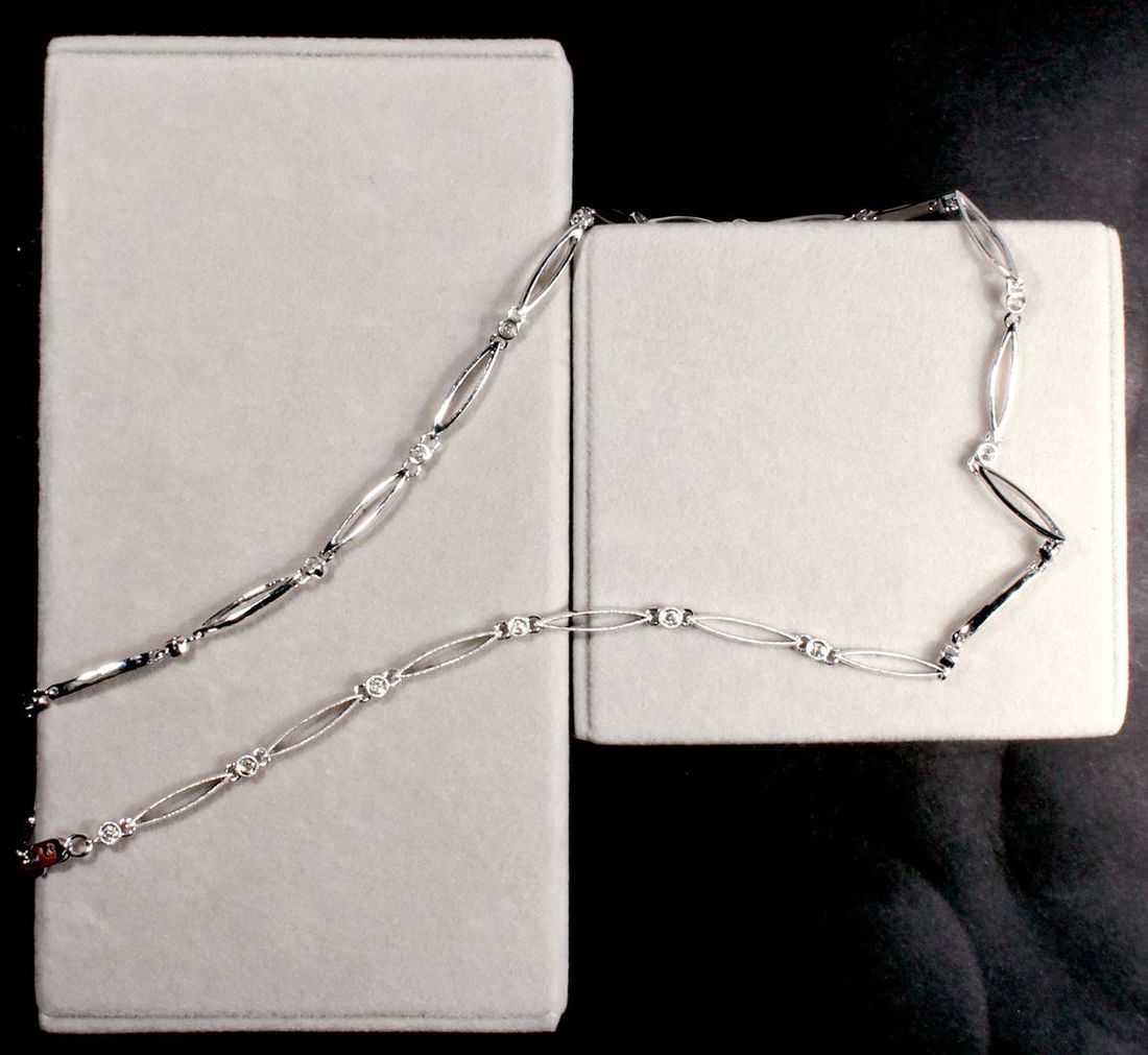 (x) A 14k white gold diamond necklace, weighs 11.46g, 23 diamonds 0.44 carats in total