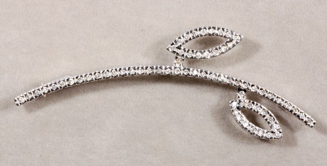 (x) An 18k white gold diamond brooch, weighs 5.87g, 67 diamonds 0.40 carats in total