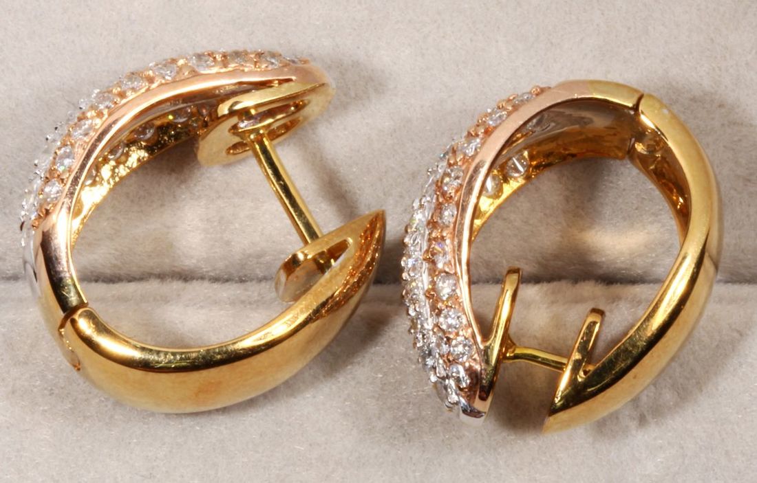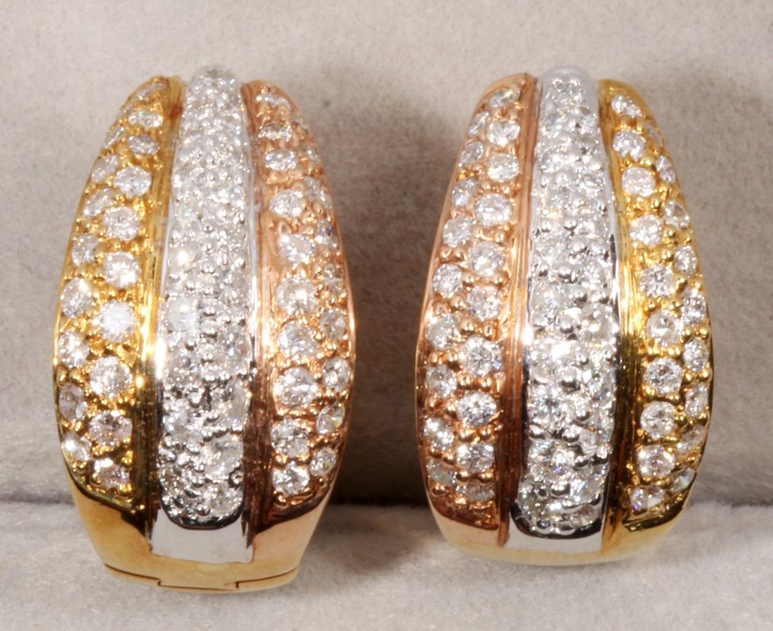 (x) A pair of 18k gold diamond earrings, weighs 9.2g, 116 diamonds 1.35 carats in total