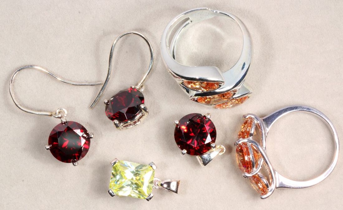 (x) A group of .925 silver rings, earrings and pendant