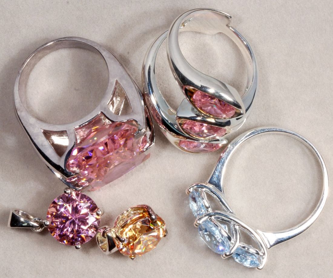 (x) A group of .925 silver rings and pendant