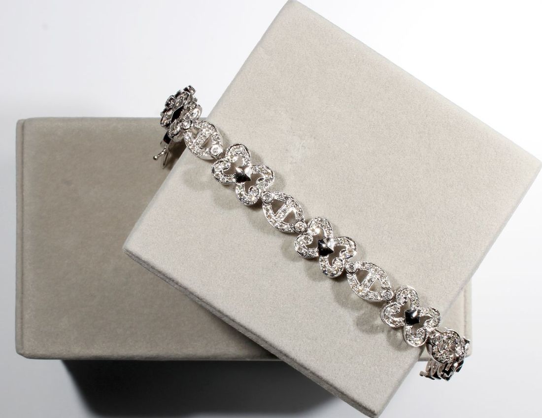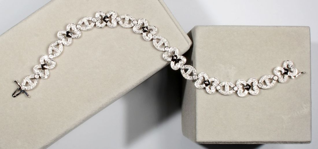 (x) An 18k white gold diamond bracelet, weighs 18.55g, 280 diamonds 2.45 carats in total