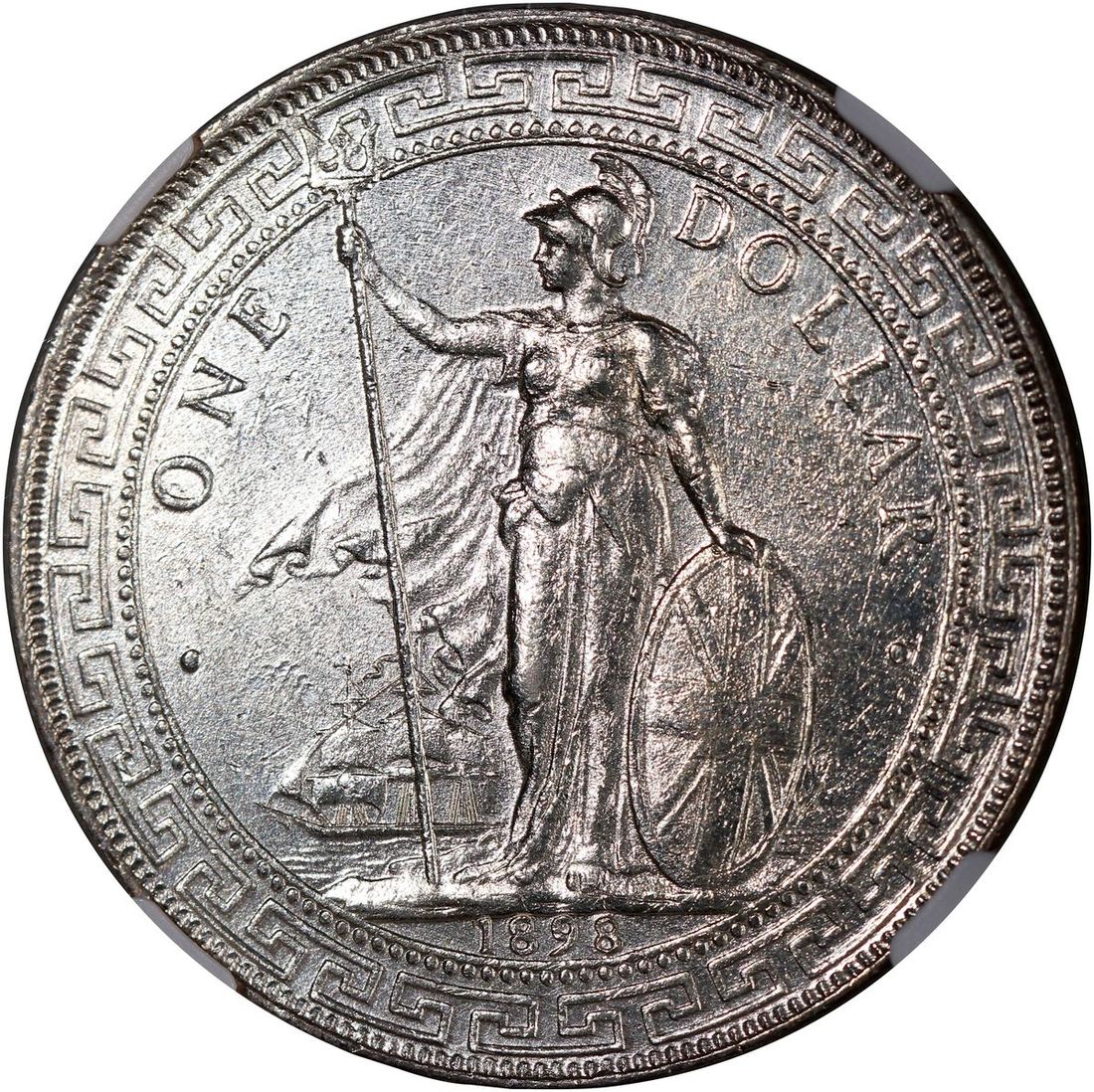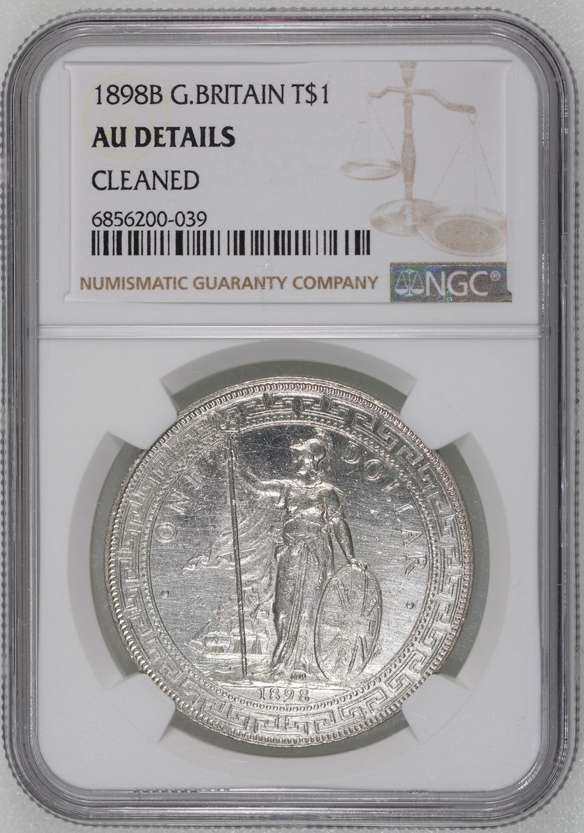 Great Britain, [NGC AU Details] silver trade dollar, 1898B, NGC AU Details, cleaned. Cert.# 6856200-039