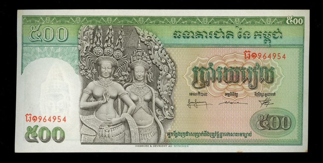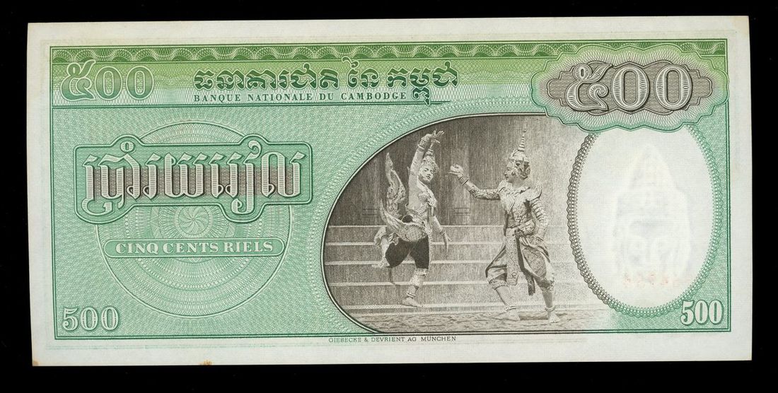 Banque Nationale du Cambodge, Cambodia, 500 riels, ND (1957-70), serial number 964954, (Pick 9), foxing at margin, otherwise uncirculated