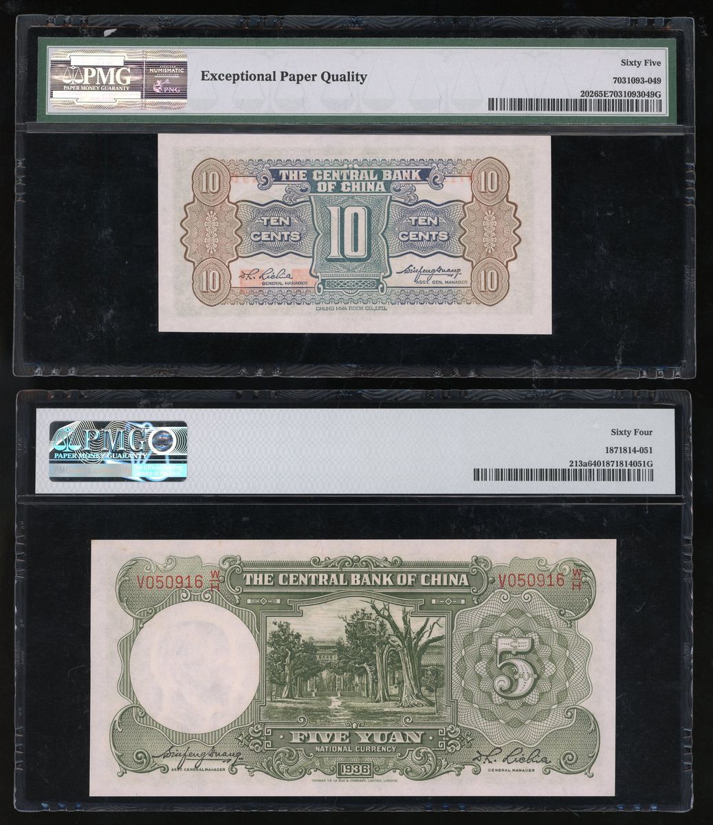 -5 yuan, 1936, Pick 213a, PMG 65EPQ,