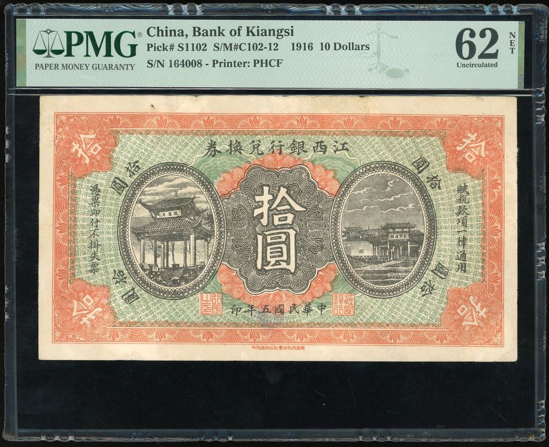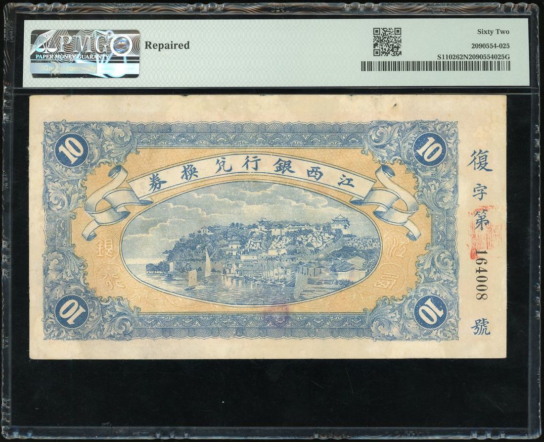 Bank of Kiangsi, China, 10 yuan, Year 5 (1916), serial number 164008, (Pick S1102), PMG 62NET, repaired. Quite scarce