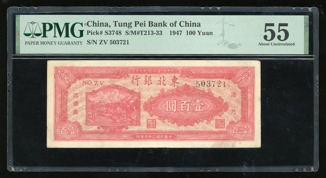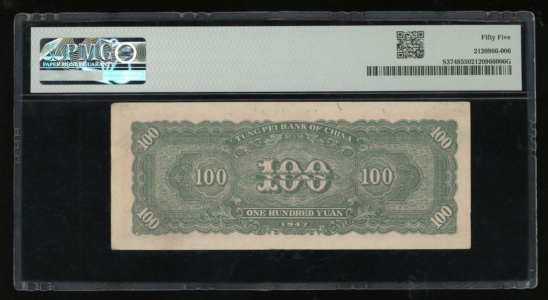Tung Pei Bank of China, 100 yuan, Year 36 (1947), serial number ZV503721, (Pick S3748), PMG 55