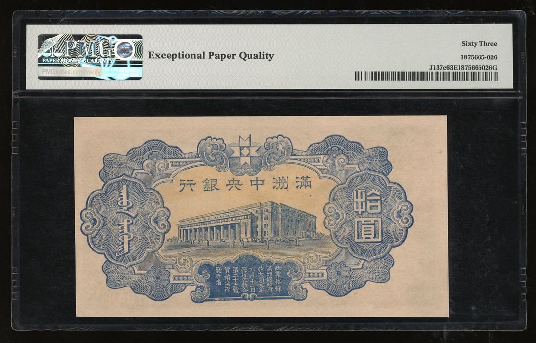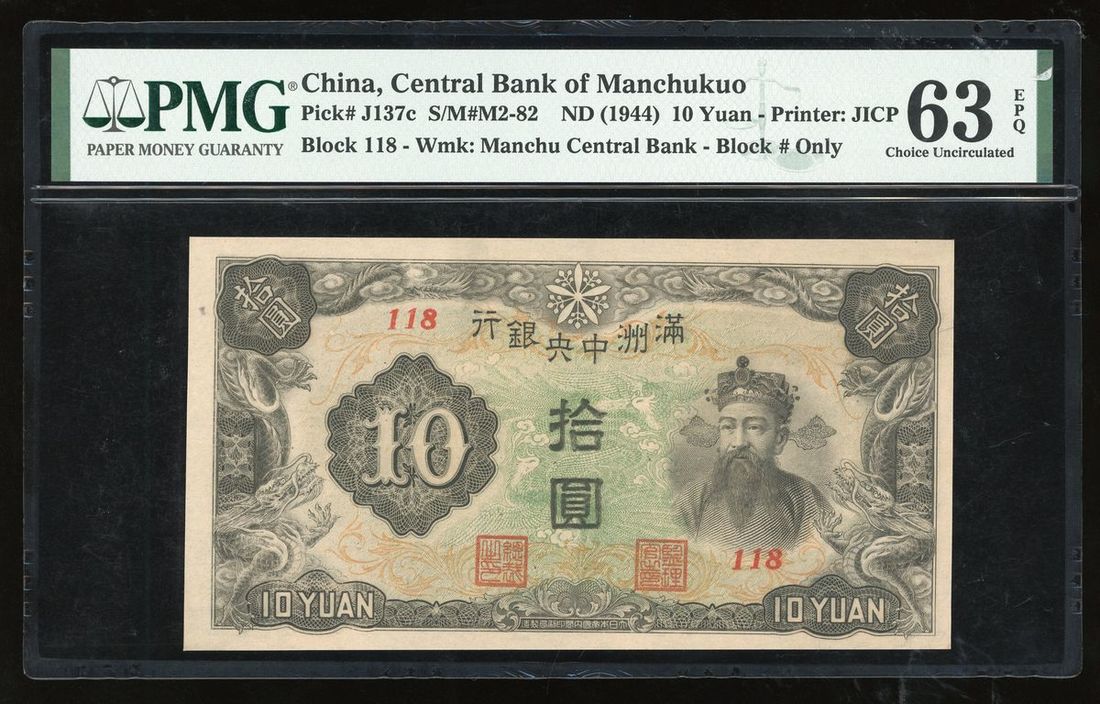 Central Bank of Manchukuo, China, 10 yuan, ND (1944), block 118, (Pick J137c), PMG 63EPQ