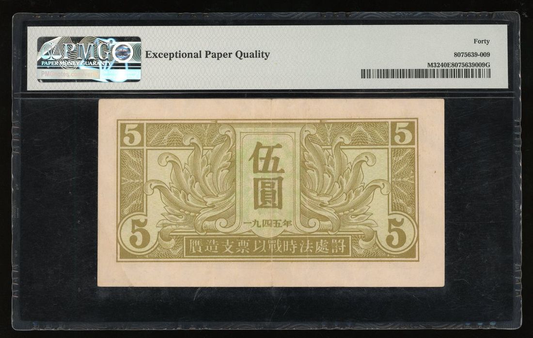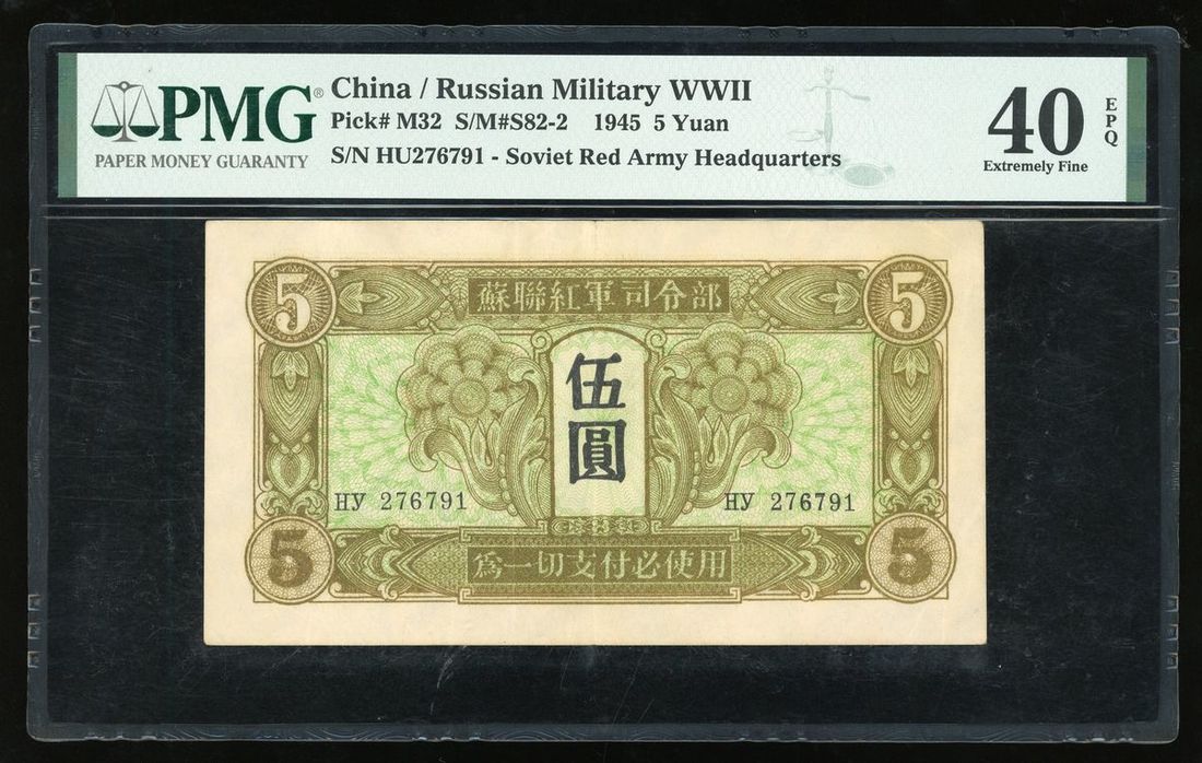 Soviet Red Army, China, 5 yuan, 1945, serial number 276791, (Pick M32), PMG 40EPQ extremely fine