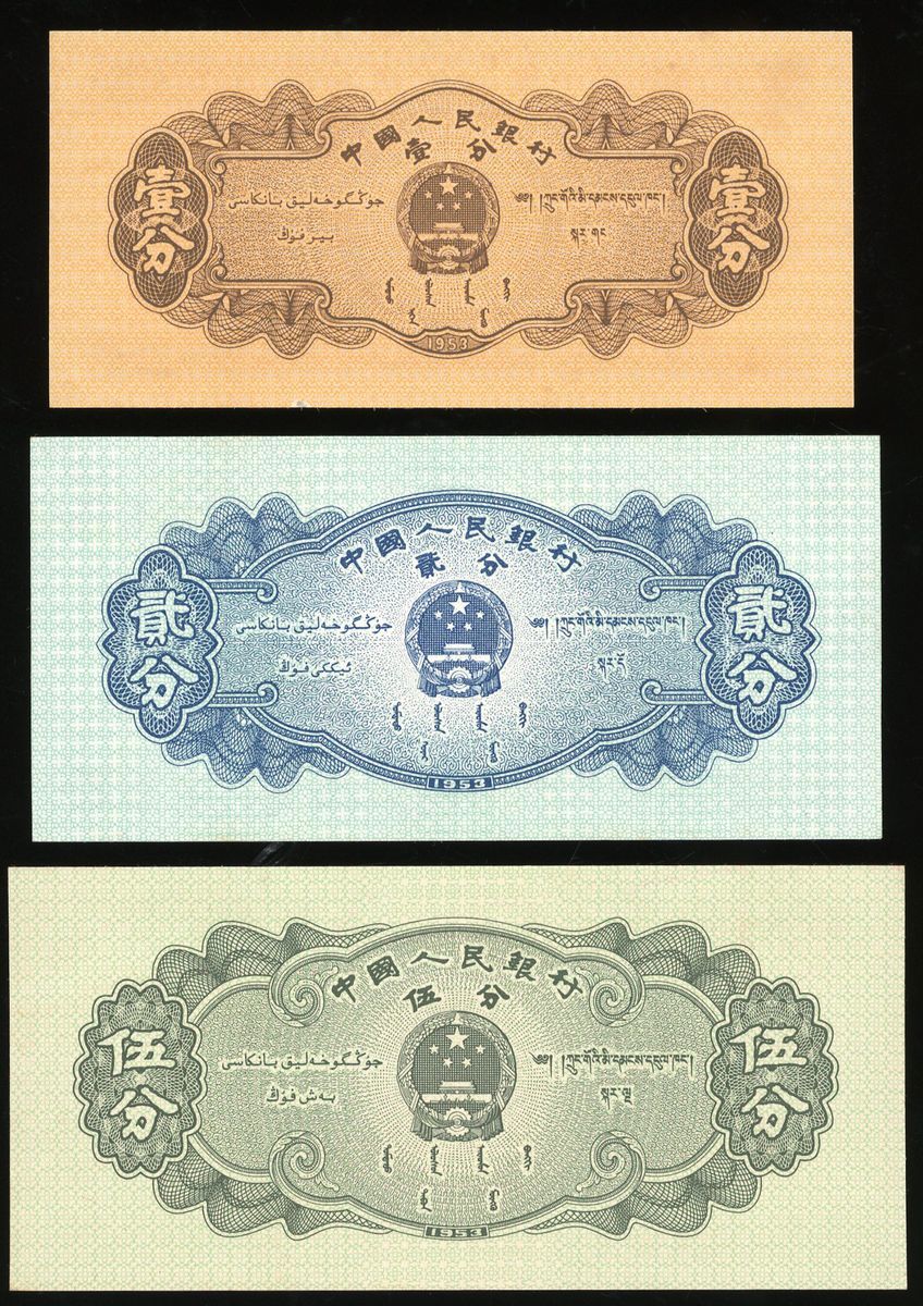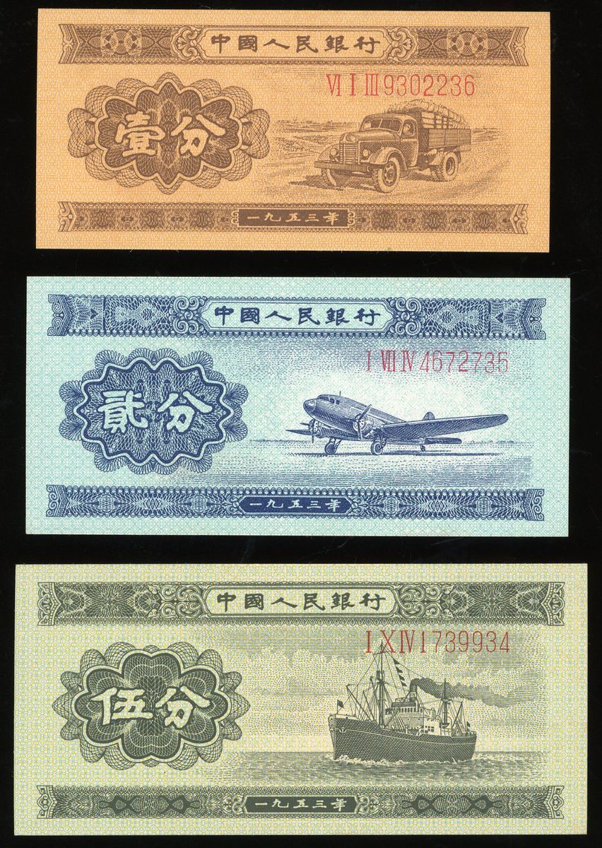People's Bank of China, 2nd Series Renminbi, 1953, including 1, 2 and 5 fen, with serial number type, (Pick 860a, 861a, 862a), 5 fen aUNC, others UNC (3)