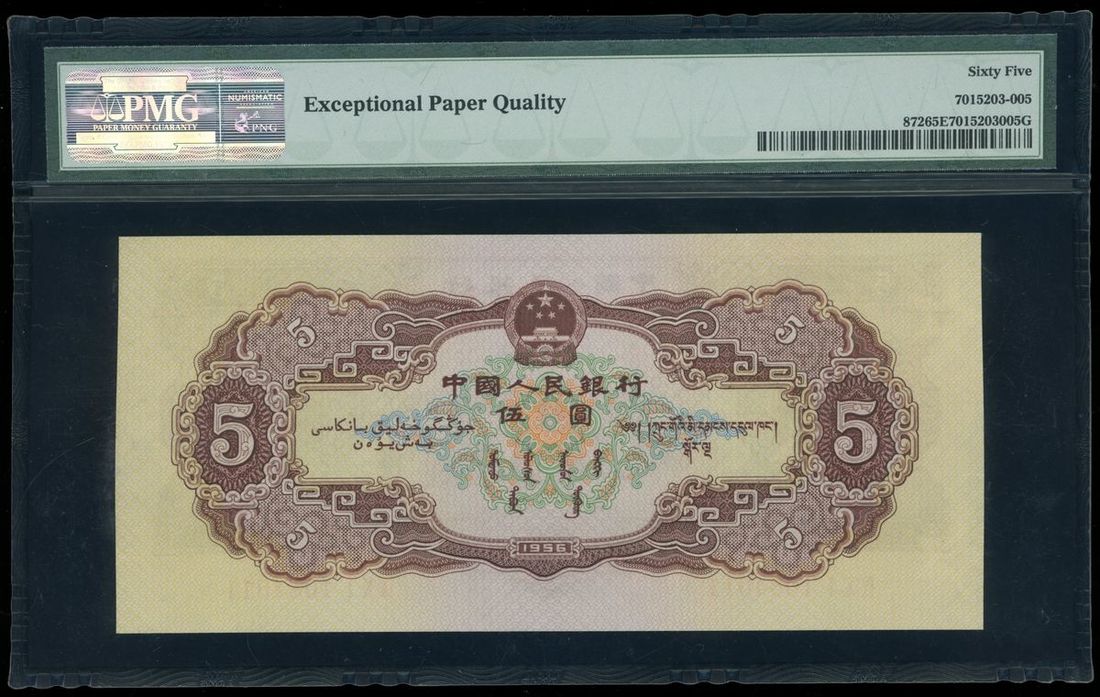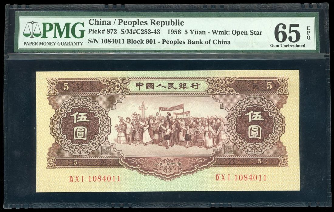 People's Bank of China, 2nd Series Renminbi, 1956, 5 yuan, serial number IX X I 1084011, (Pick 872), PMG 65EPQ