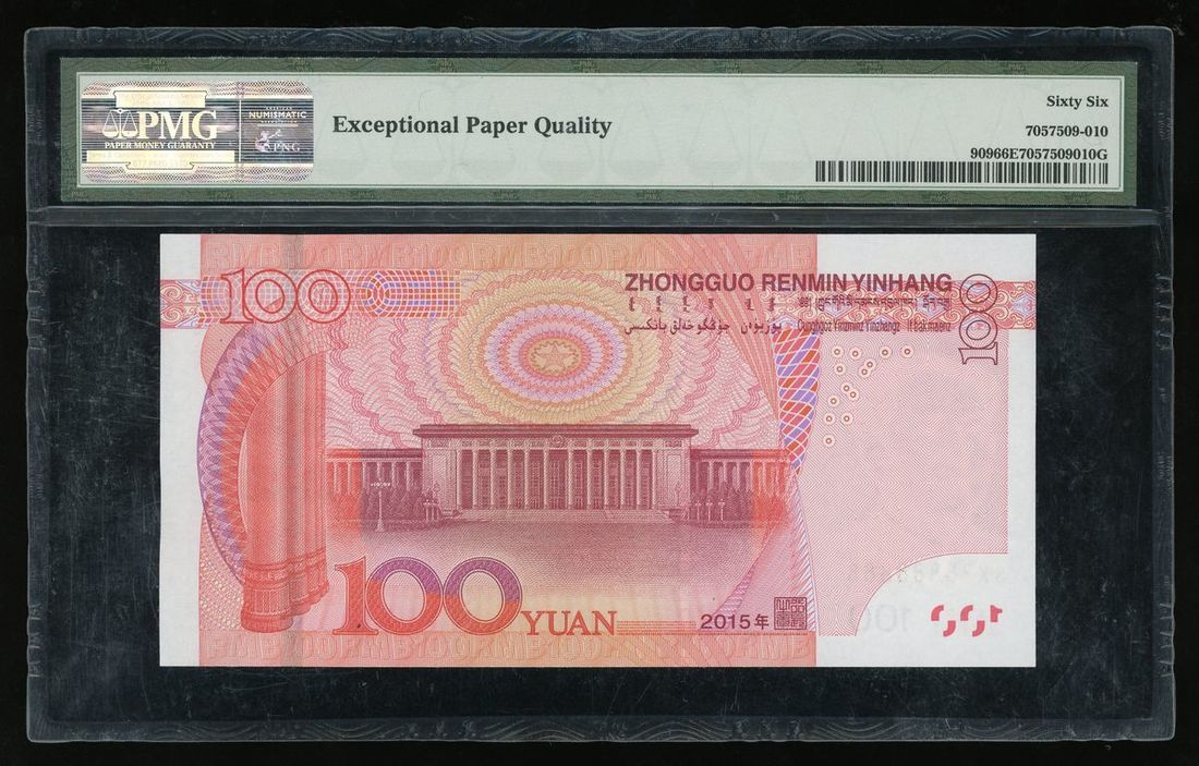People's Bank of China, 5th Series Renminbi, 100 yuan, 2015, near solid serial number HK28888888, (Pick 909), PMG 66EPQ Gem Uncirculated