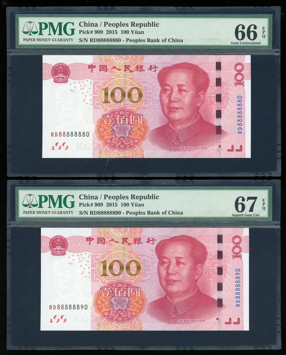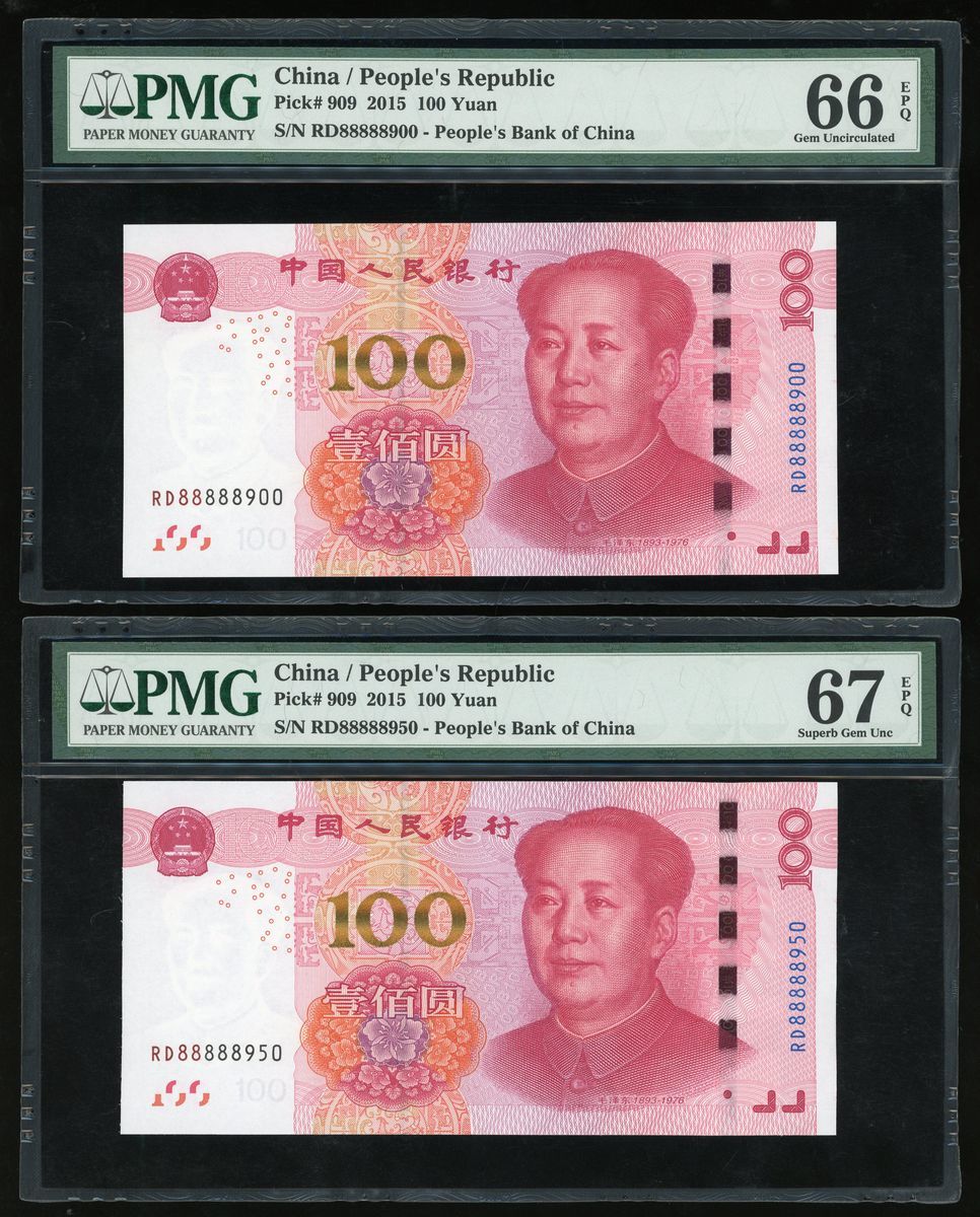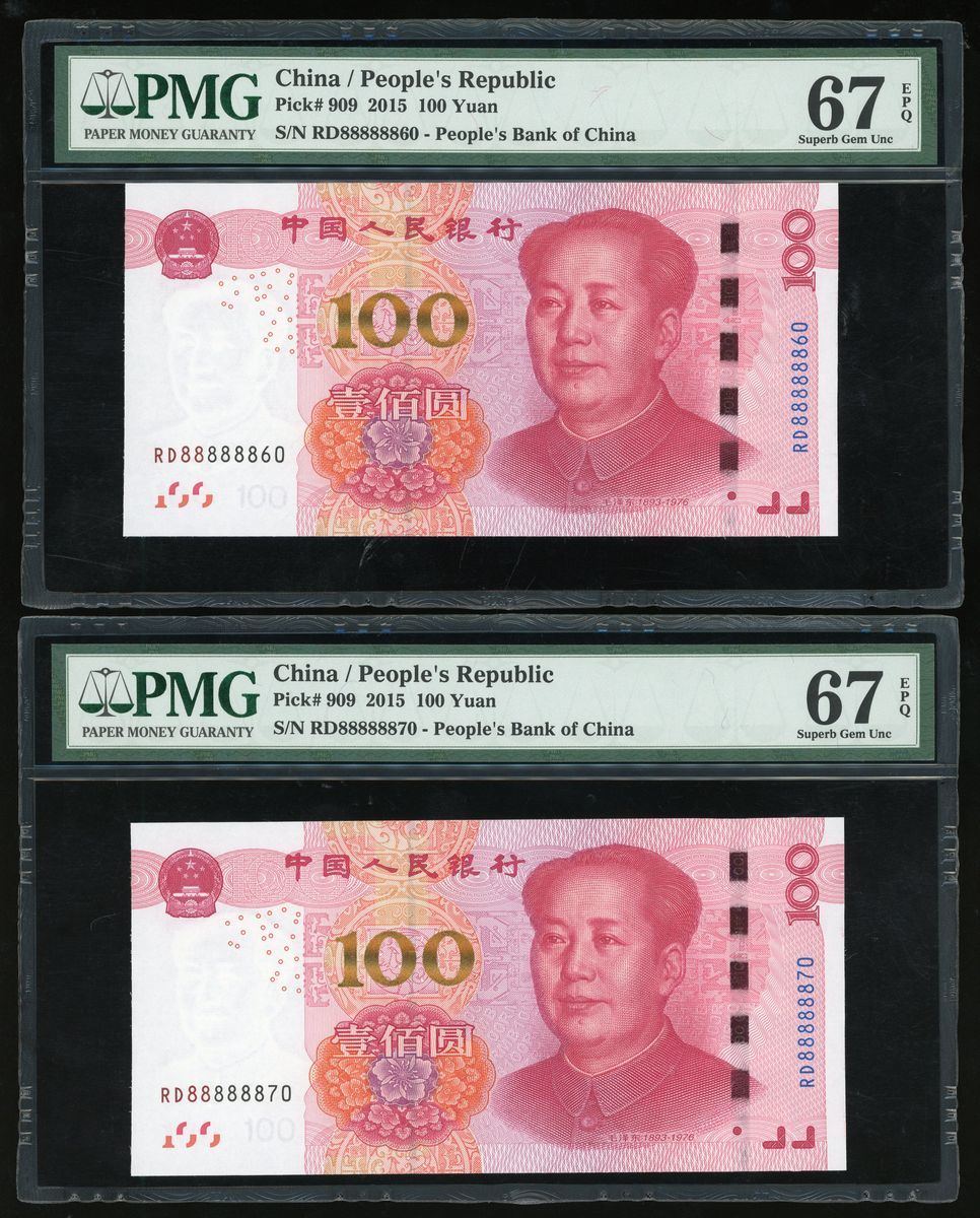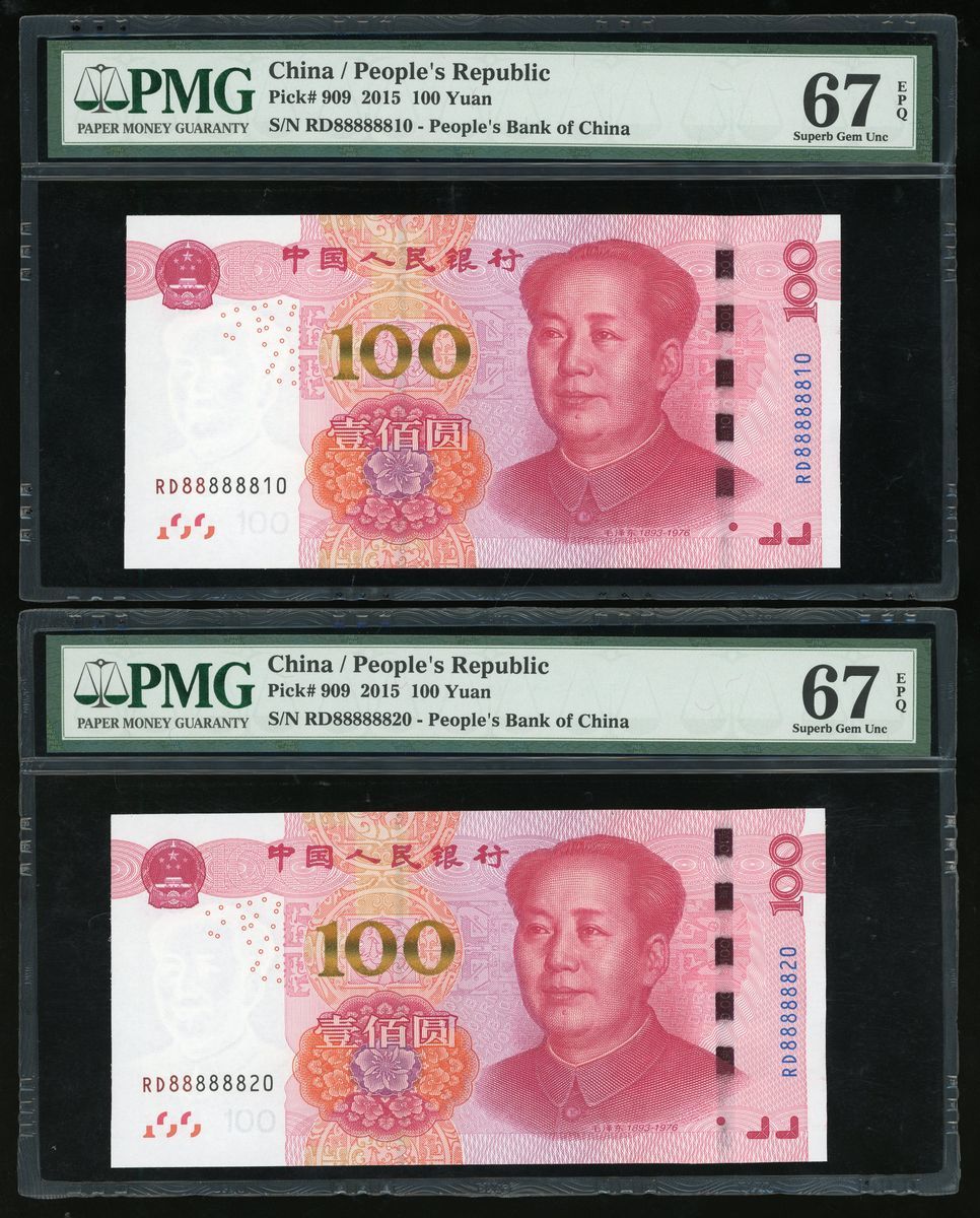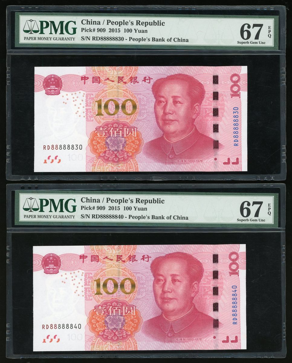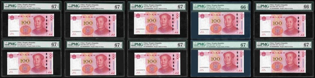 People's Bank of China, 5th Series Renminbi, 2015, 100 yuan (10), a group of near super solid 8s, serial number,