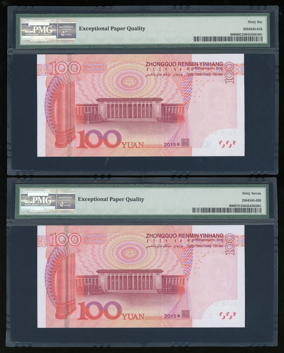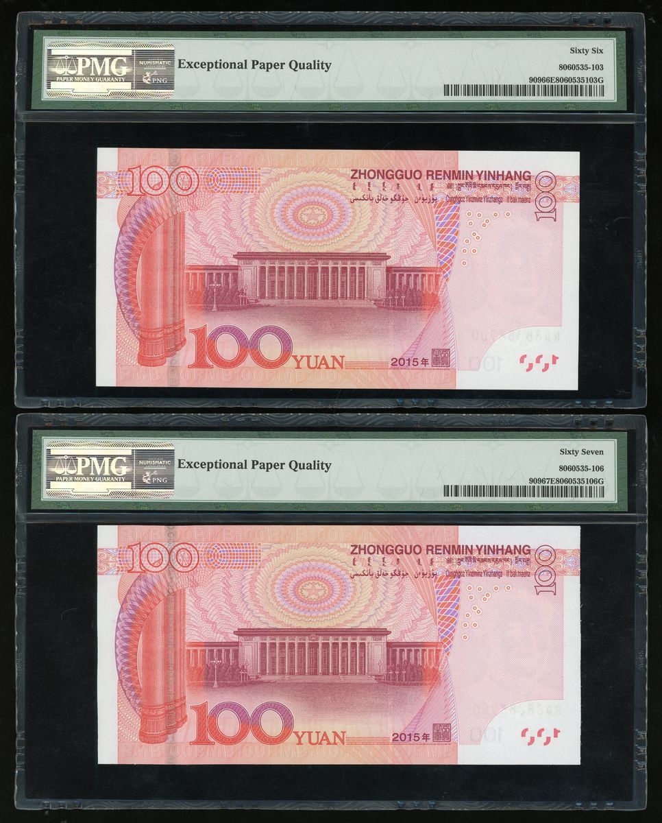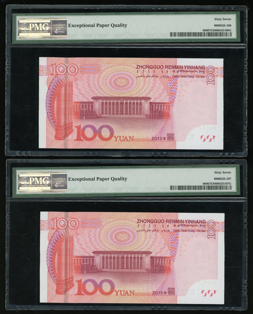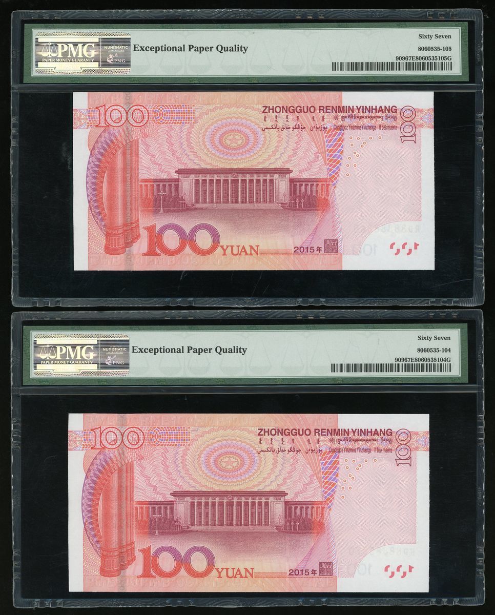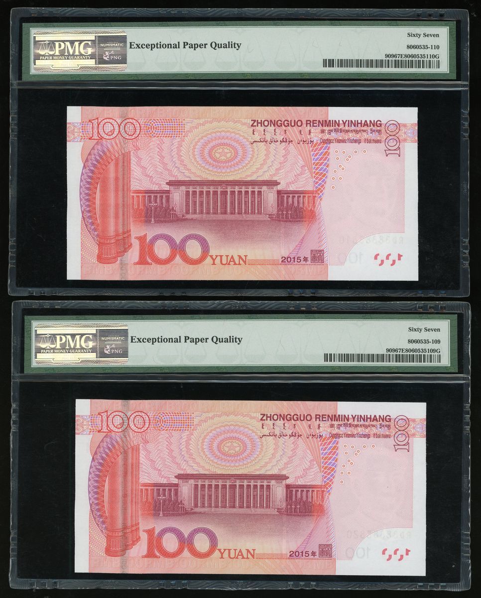 People's Bank of China, 5th Series Renminbi, 2015, 100 yuan (10), a group of near super solid 8s, serial number,