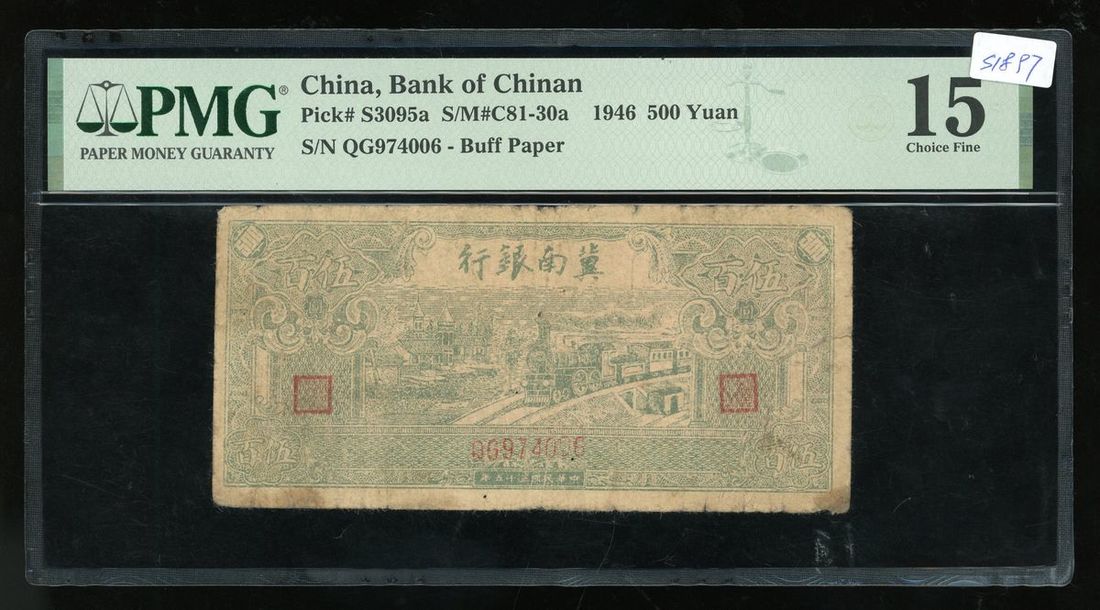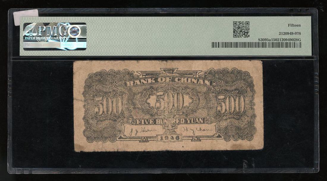-Bank of Chinan, 500 yuan, 1946, Pick S3095a, PMG 15,