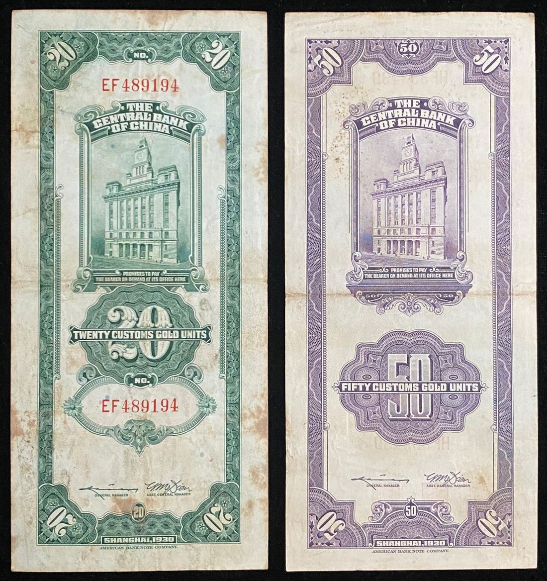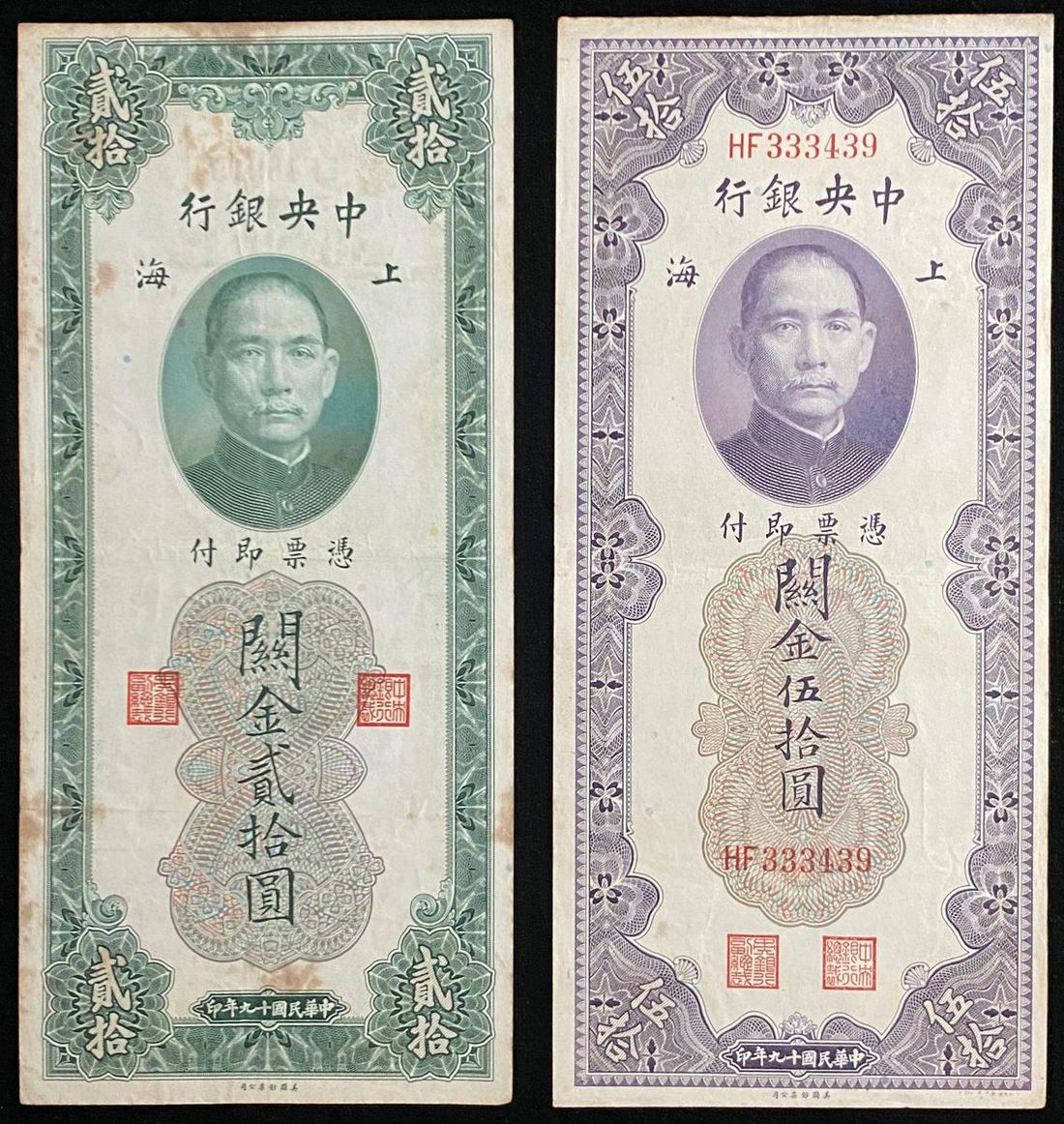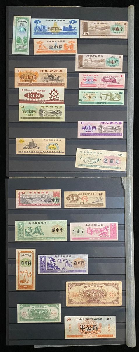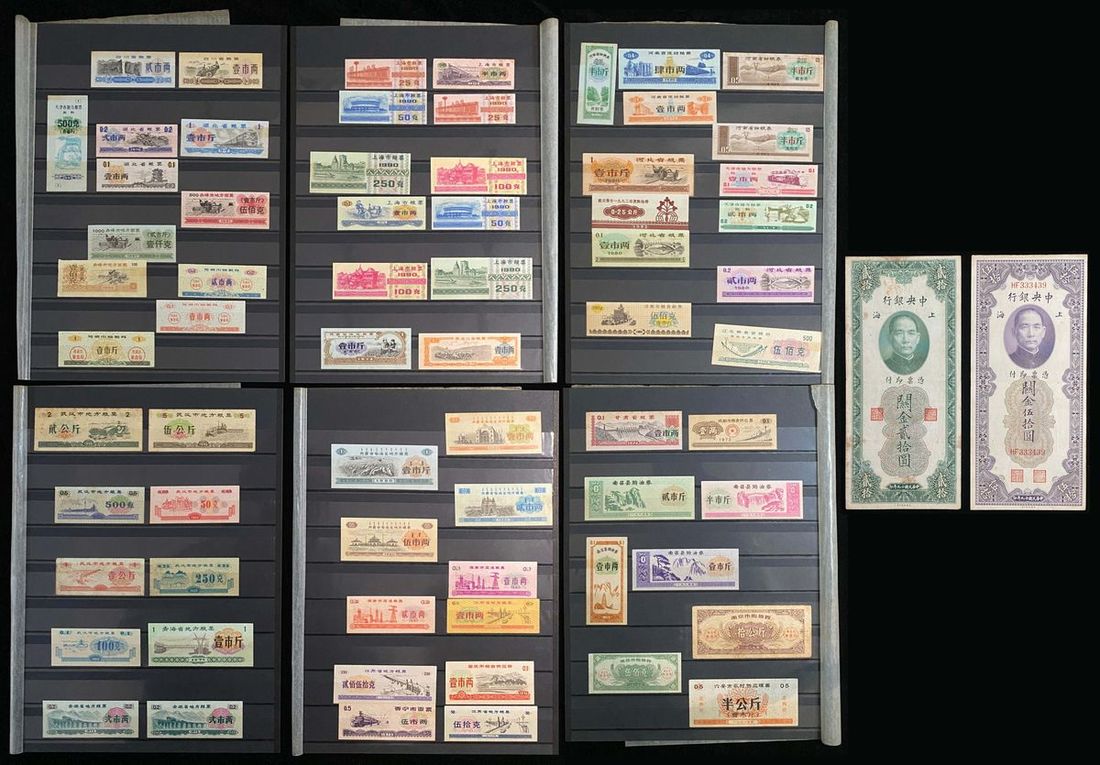 China, a group of 67x ration tickets, including 2x Central Bank of China 20 and 50 yuan customs gold unit,