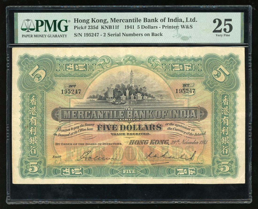 1941年有利銀行伍員,編號195247,PMG 25,原裝狀態,較稀有之尾發年份