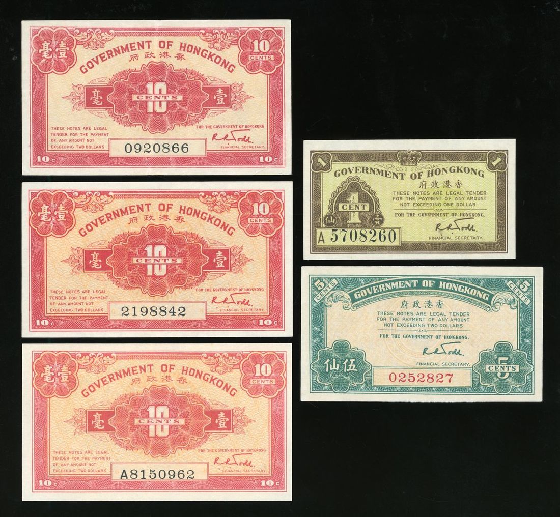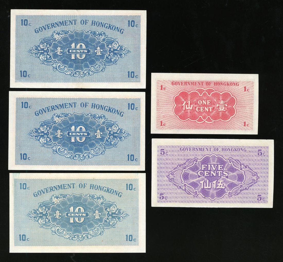 Government of HongKong, a group of 5x fractional issues, 1940-41, including 1 cent, 5 cent, 10 cents (3),